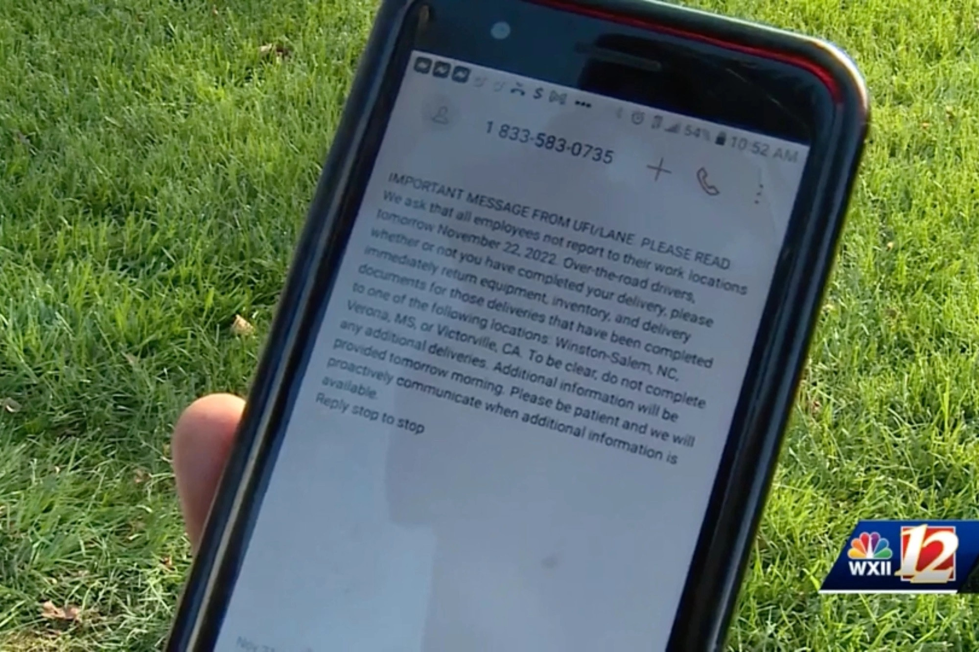 Nhân viên UFI nhận được tin nhắn yêu cầu không đi làm kể từ ngày 22/11. Ảnh: WXII. |