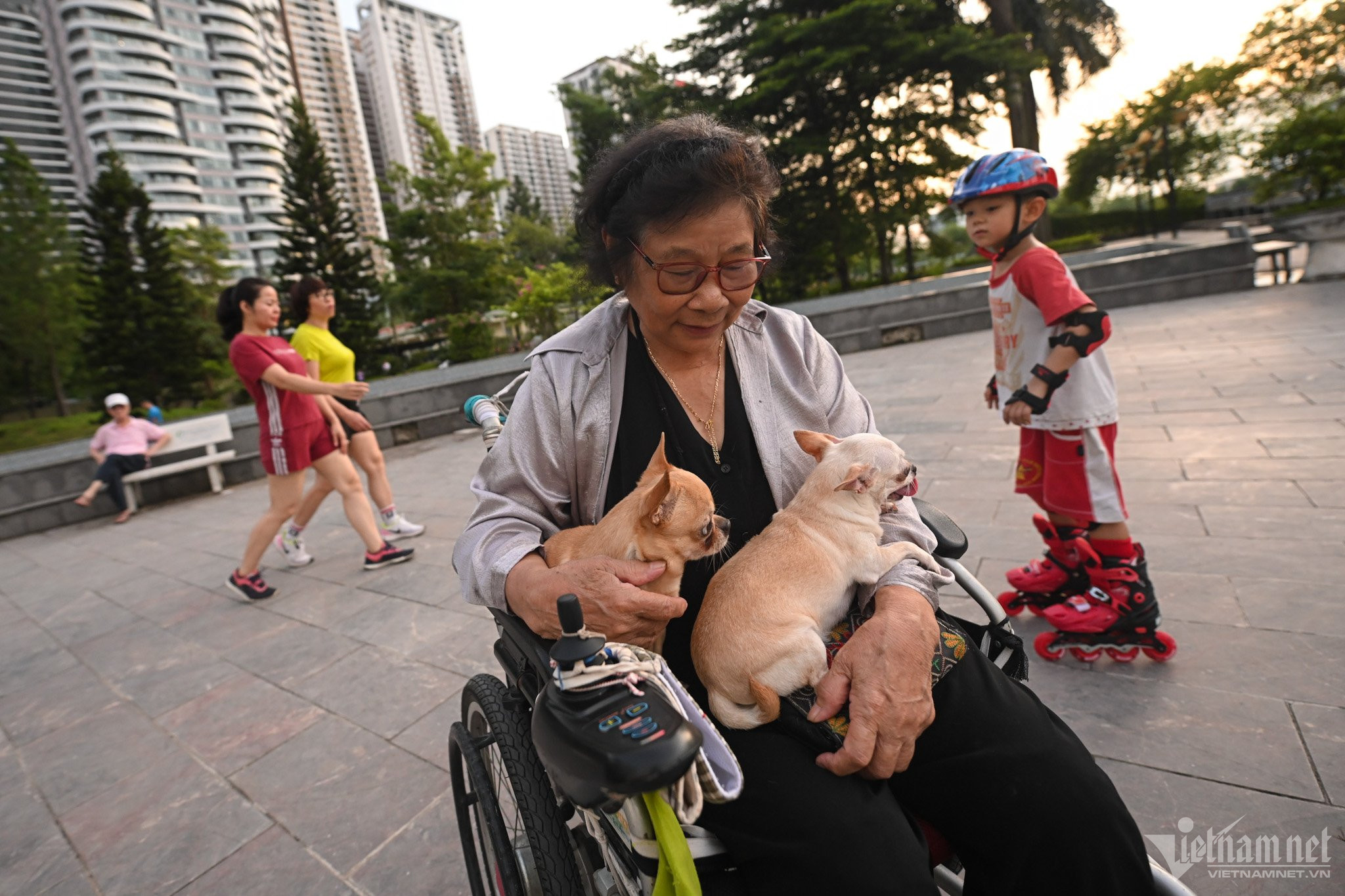 “Chiều tối là thời điểm đông đúc nhất khi người dân quanh khu vực vào công viên đi dạo. Ngày nào tôi cũng mang 2 chú cún cưng ra đây để hóng gió. Thông thường chỉ khoảng 20h mọi người về hết. Buổi tối ở đây khá vắng vẻ”, bà cụ cho biết.