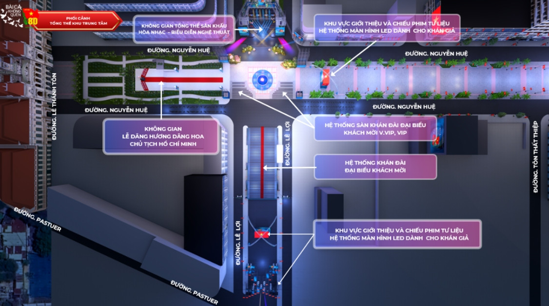 Đây là lần đầu tiên tại Việt Nam có một chương trình hòa nhạc ngoài trời kết hợp cùng các hình thức biểu diễn nghệ thuật đa dạng. Sân khấu hòa nhạc với hơn 100 nhạc công và không gian đa thực cảnh tái hiện quá trình hình thành Quân đội Nhân dân, phục dựng hình ảnh nhân dân miền Nam trong kháng chiến... sẽ được đầu tư quy mô, bao trùm toàn bộ công viên Lam Sơn.