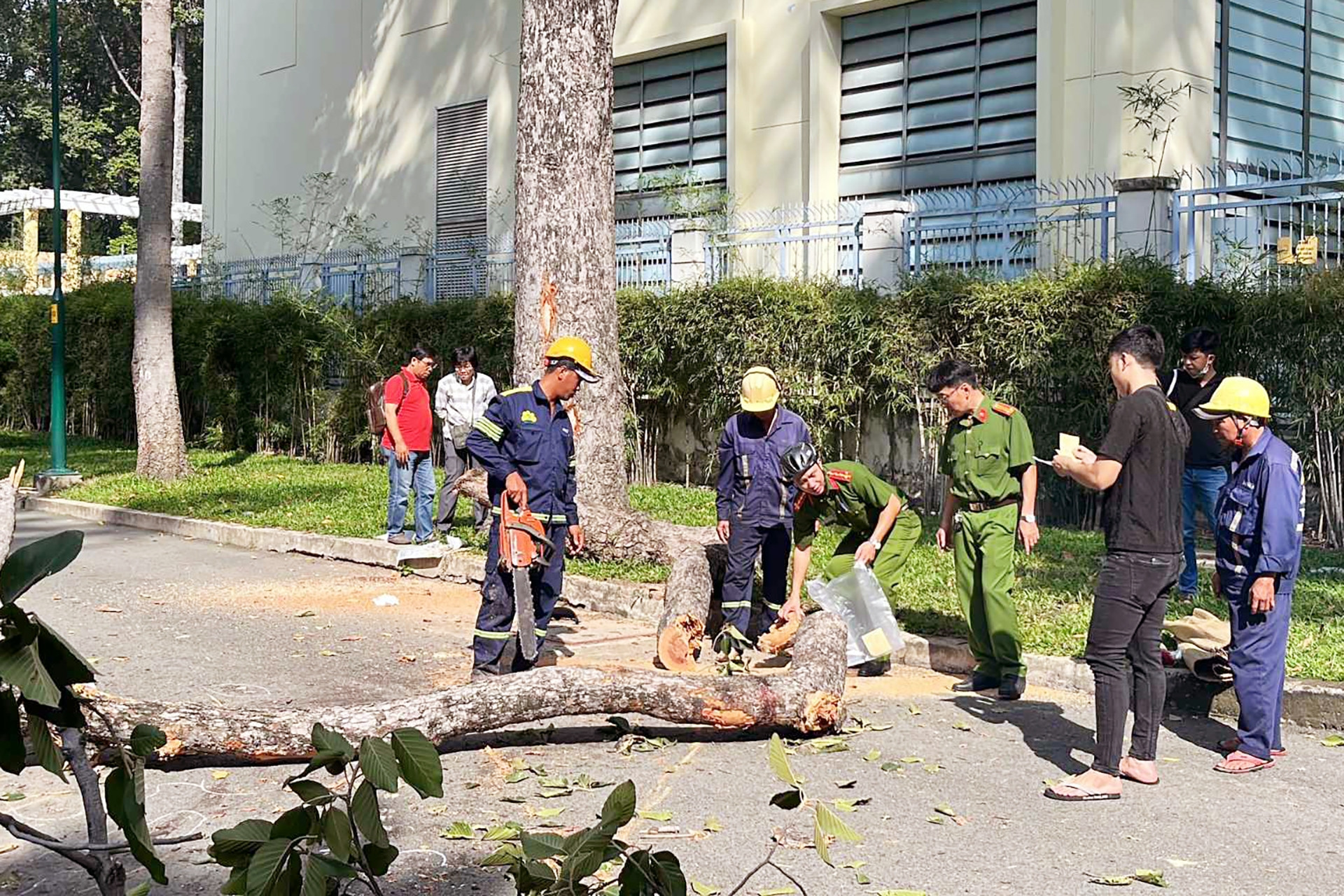 Nhánh cây cổ thụ có đường kính khoảng 20cm, rơi từ độ cao khoảng 15m xuống trúng nhiều người đang ở công viên Tao Đàn, quận 1, TPHCM, khiến nhiều người thương vong.