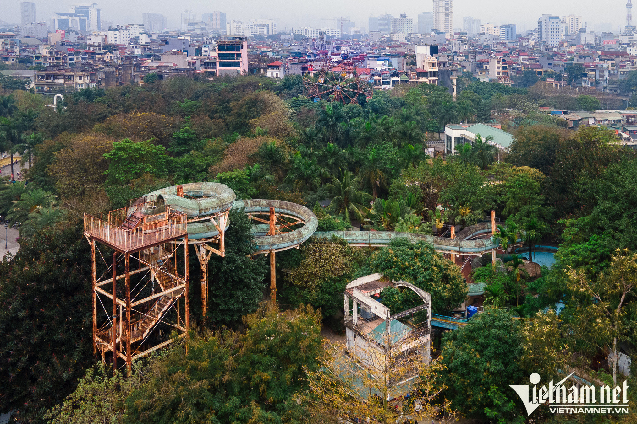 Từng được đầu tư hơn 280 tỷ đồng với các hạng mục khu vui chơi giải trí, hệ thống ống trượt, máng trượt nước, vòng đu quay khổng lồ... Tuy nhiên đến nay, tất cả đã bị hoang tàn, gỉ sét do không được duy tu bảo dưỡng, tiềm ẩn nguy cơ đổ sập bất cứ lúc nào.