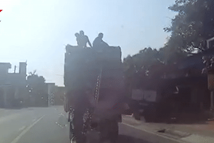 Toát mồ hôi khi thấy người ngồi vắt vẻo trên thùng xe chở cói