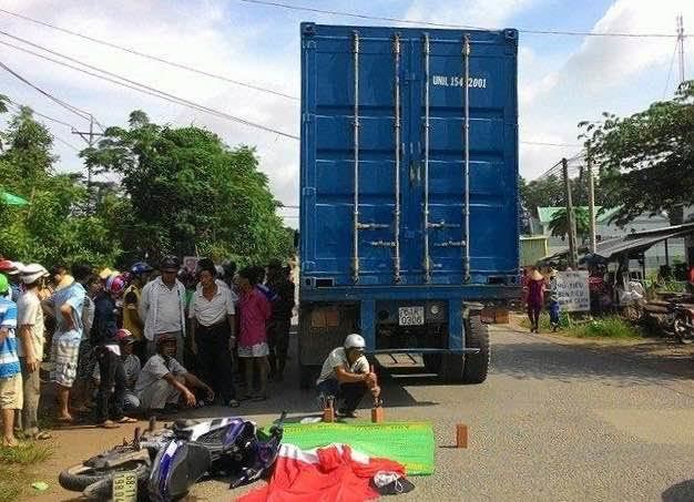 Đôi vợ chồng trẻ chết thảm dưới gầm xe container