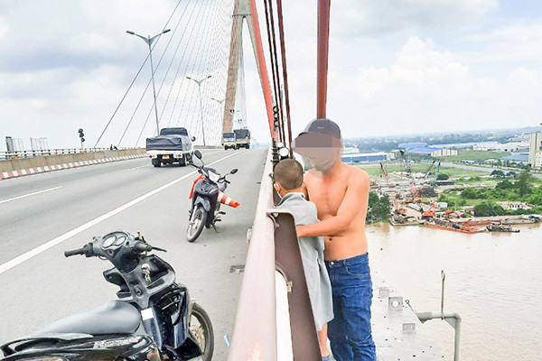 Do thiếu nợ và buồn chuyện gia đình, người đàn ông, 29 tuổi, ôm con nhỏ lên cầu Cần Thơ định tự tử thì được Công an phường Hưng Phú, quận Cái Răng cứu.
