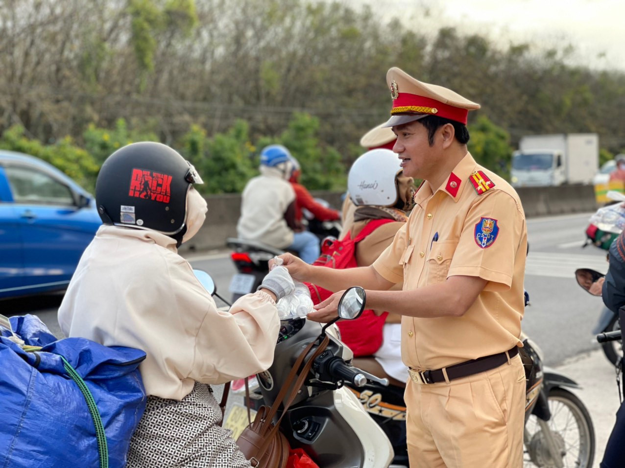 “Chúng tôi không chỉ hỗ trợ những chai nước nhỏ để động viên tinh thần mà còn giúp các trường hợp khó khăn hoặc sự cố. Bà con có thể liên hệ, chúng tôi sẵn sàng giúp đỡ”, Đại úy Trần Thị Vân nói.