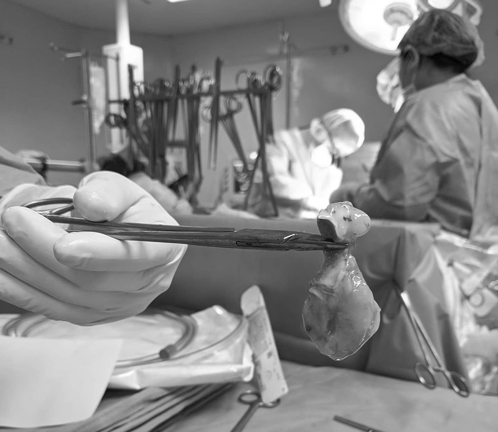 | Các bác sĩ đã cắt trọn u nhầy ra |