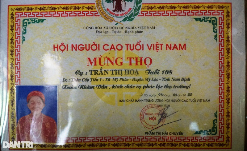 Tết năm 2022, nguyên Bộ trưởng Bộ LĐ-TB&XH Phạm Thị Hải Chuyền, nay là Chủ tịch Hội người cao tuổi Việt Nam ký giấy mừng thọ cụ Trần Thị Họa, ghi nhận cụ 108 tuổi.