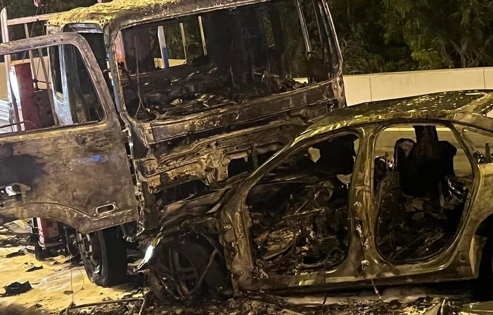 Cú tông cực mạnh khiến hai phương tiện cháy ngùn ngụt. Tài xế xe tải cẩu mở cửa thoát kịp ra ngoài. Riêng hai người khác ngồi trên ôtô 4 chỗ tử vong tại chỗ (chưa rõ danh tính).