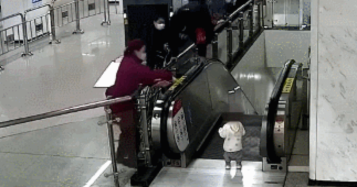 Đoạn clip ghi lại khoảnh khắc một nhân viên bảo vệ đã có phản ứng cực nhanh để cứu em bé sắp bị ngã khỏi thang cuốn đã khiến nhiều cư dân mạng thán phục.