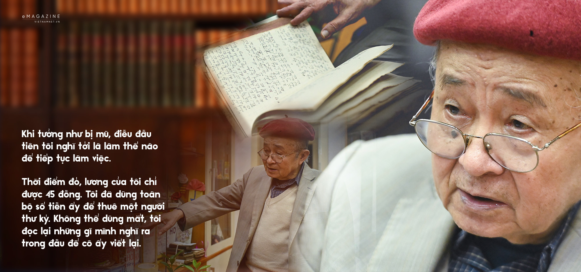 Thời điểm đó, lương của tôi chỉ được 45 đồng. Tôi đã dùng toàn bộ số tiền ấy để thuê một người thư ký. Không thể dùng mắt, tôi đọc lại những gì mình nghĩ ra trong đầu để cô ấy viết lại”.