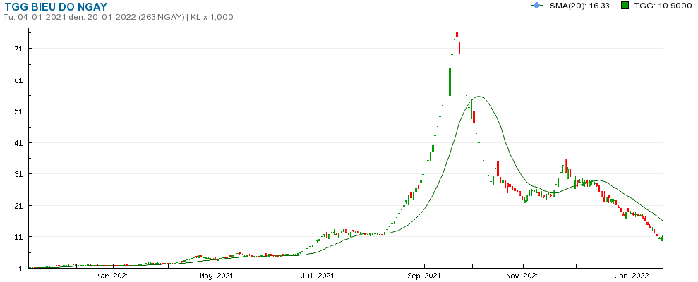 Tuy nhiên, trong những ngày đầu năm 2022, cổ phiếu TGG suy giảm. Hiện cổ phiếu của TGG đang ở mức 10.500 đồng/cp, giảm tương đương với 86% so với hồi cuối tháng 9 năm ngoái.