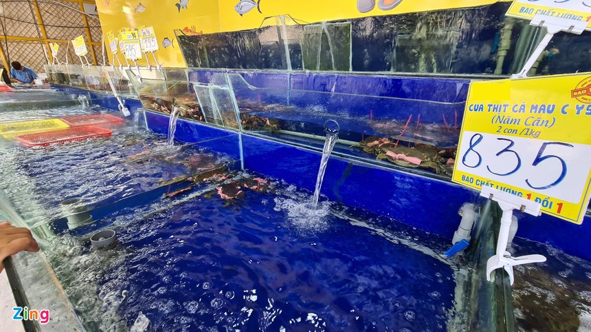 Ghi nhận của Zing tại một số cửa hàng hải sản ở TP.HCM cũng cho thấy giá cua thịt Cà Mau loại lớn hiện ở mức 800.000-900.000 đồng/kg, loại vừa 680.000-750.000 đồng/kg, loại nhỏ gần 600.000 đồng/kg, cua gạch có giá xấp xỉ 1 triệu đồng/kg, trong khi ghẹ loại 1-2 khoảng 800.000-900.000 đồng/kg.