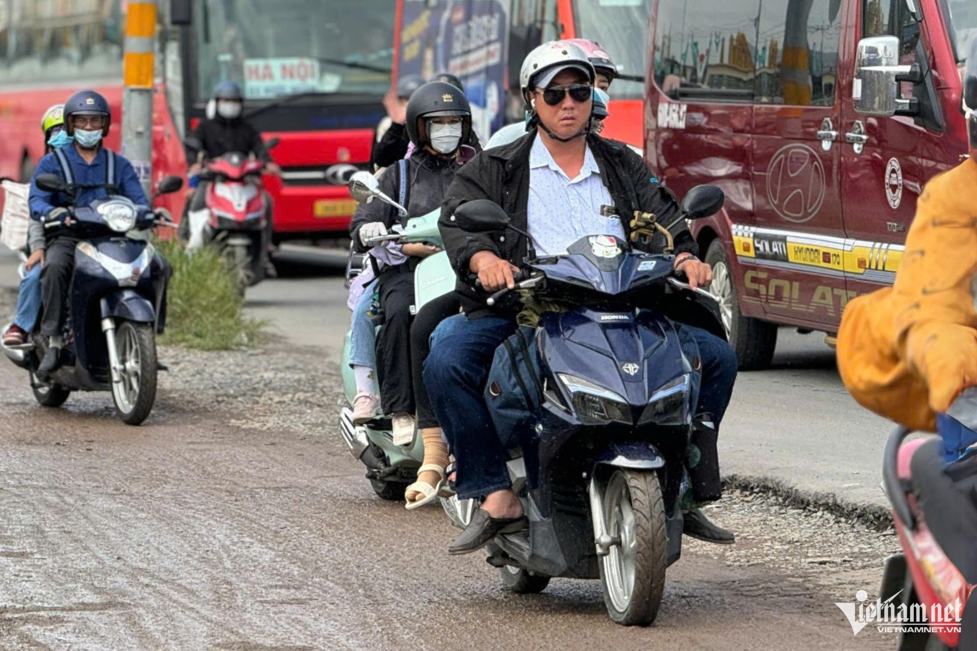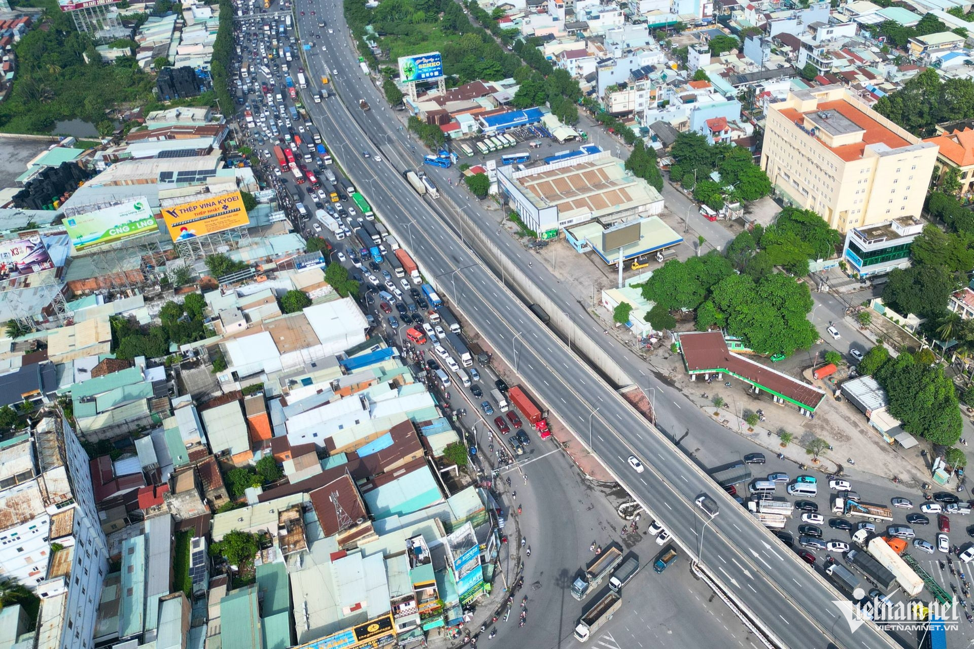 Phức tạp nhất là khu vực từ Bến xe miền Đông mới đến ngã ba Tân Vạn (Bình Dương). Dòng xe nối đuôi hàng km, xếp 5-6 hàng rồng rắn trên quốc lộ 1 để di chuyển qua cầu Đồng Nai.