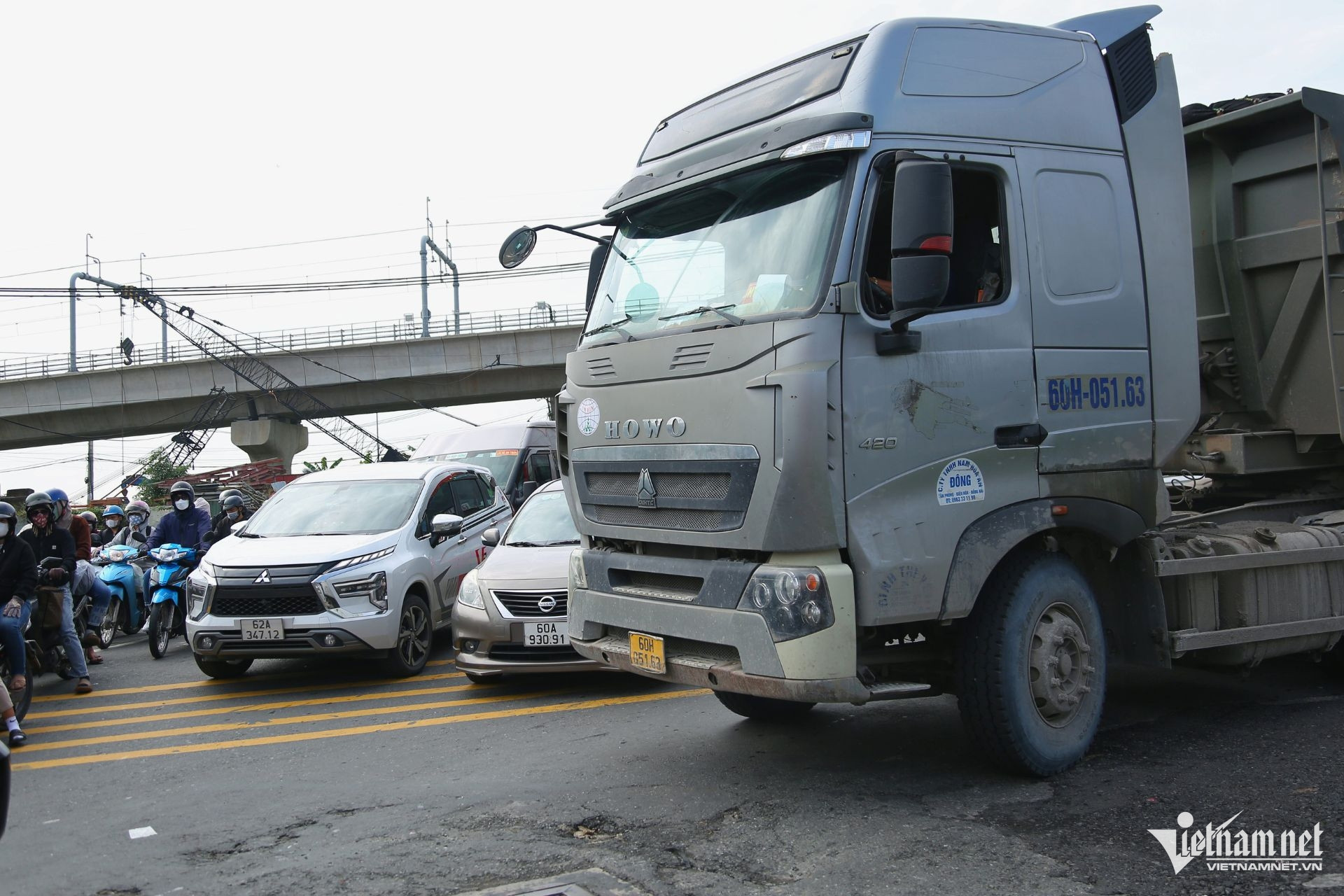 Dòng xe kéo dài hơn 7km, từ bến xe miền Đông mới đến cầu Đồng Nai gây nên tình trạng ùn ứ giao thông.