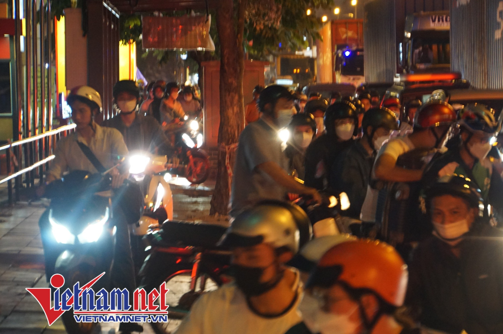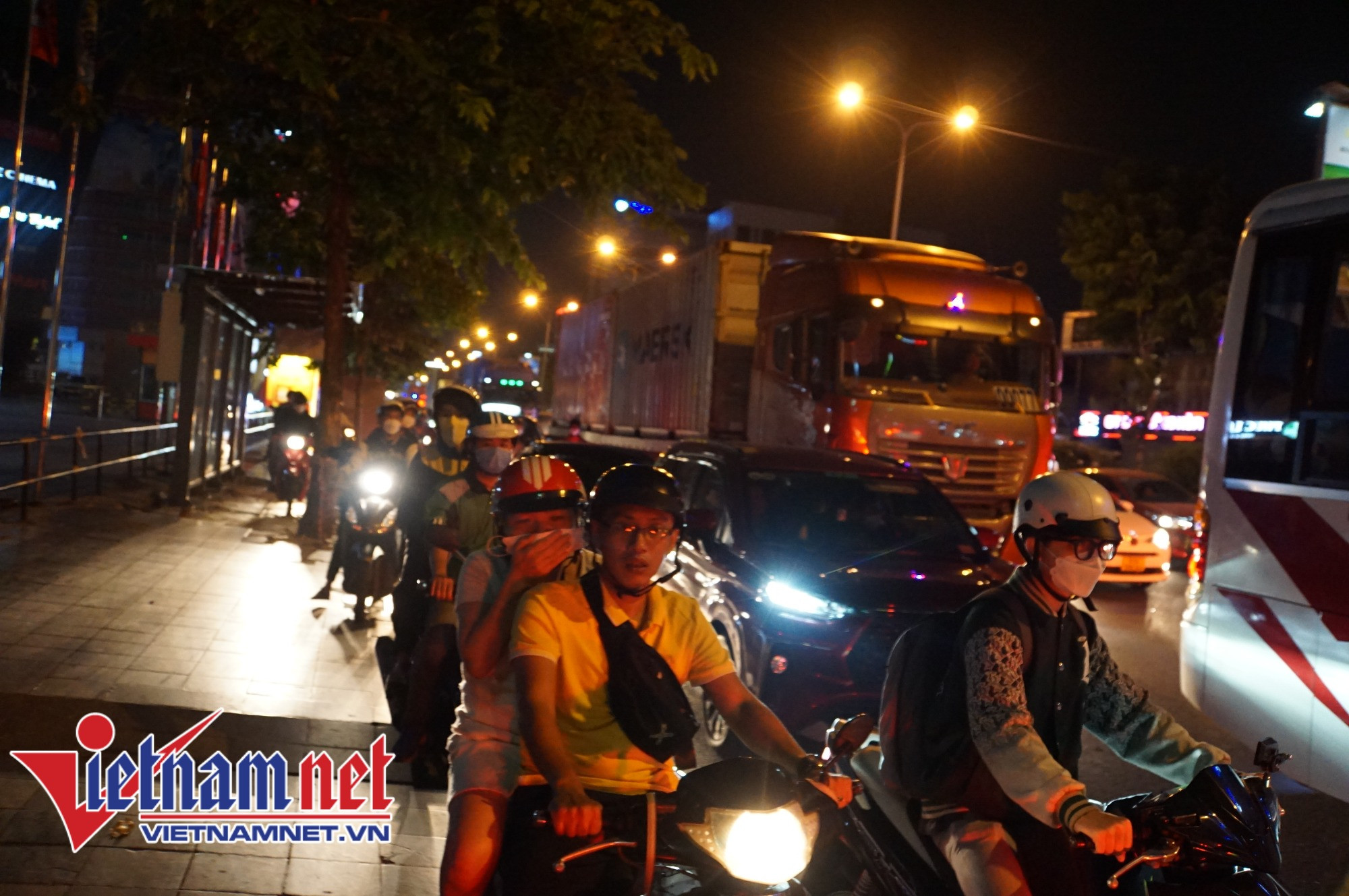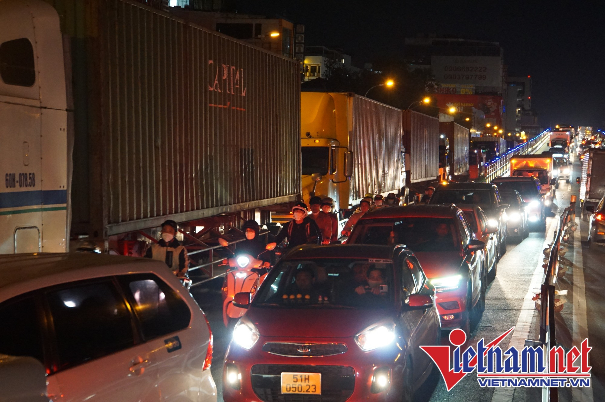 Đến 22h, thời điểm xe container, xe tải nặng được phép lưu thông vào trung tâm TP khiến tình trạng ùn tắc càng trở nên nghiêm trọng hơn.