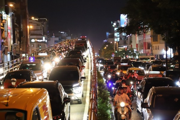 Ô tô, xe máy chen cứng trên đường và phải nhích từng mét.