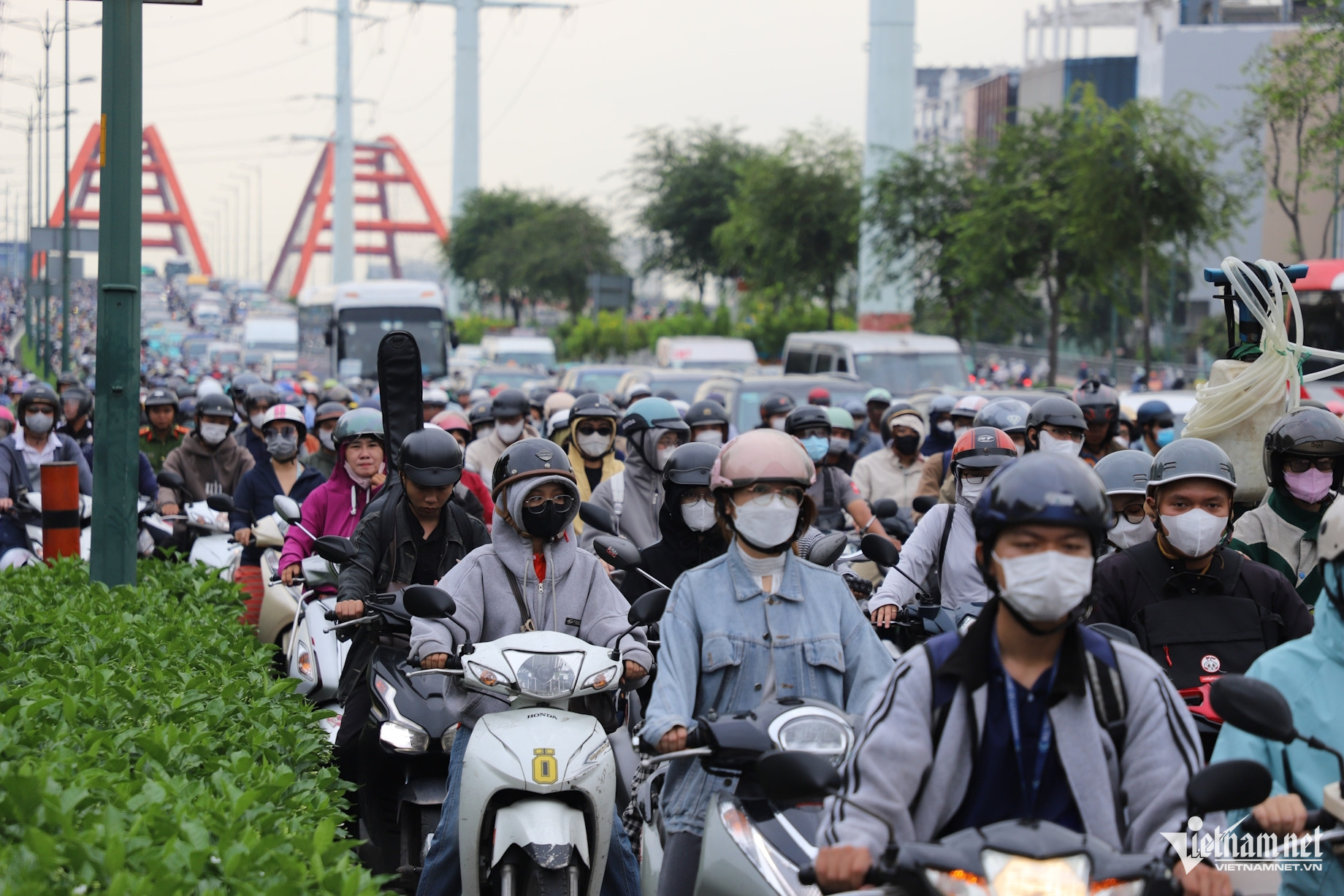 Ghi nhận của PV VietNamNet, từ sáng sớm, các tuyến đường huyết mạch ở cửa ngõ phía đông TPHCM như Quốc lộ 13, Phạm Văn Đồng, khu vực cầu Bình Triệu 2, Đinh Bộ Lĩnh... xảy ra tình trạng kẹt xe kéo dài.