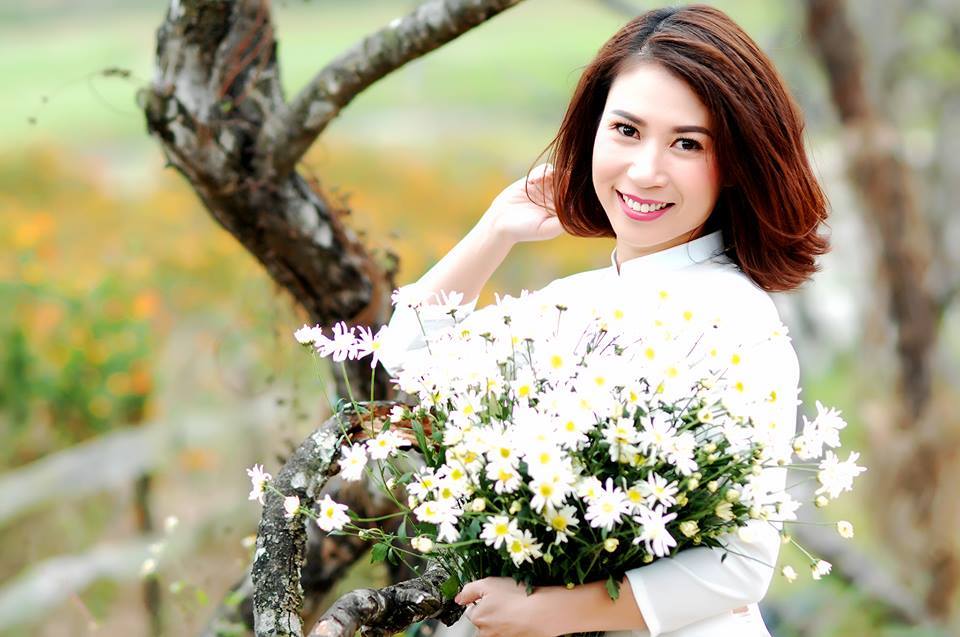 Sự e ấp, dịu dàng của các cô gái kết hợp với sự tinh khôi của cúc họa mi tạo nên vẻ đẹp say lòng người.