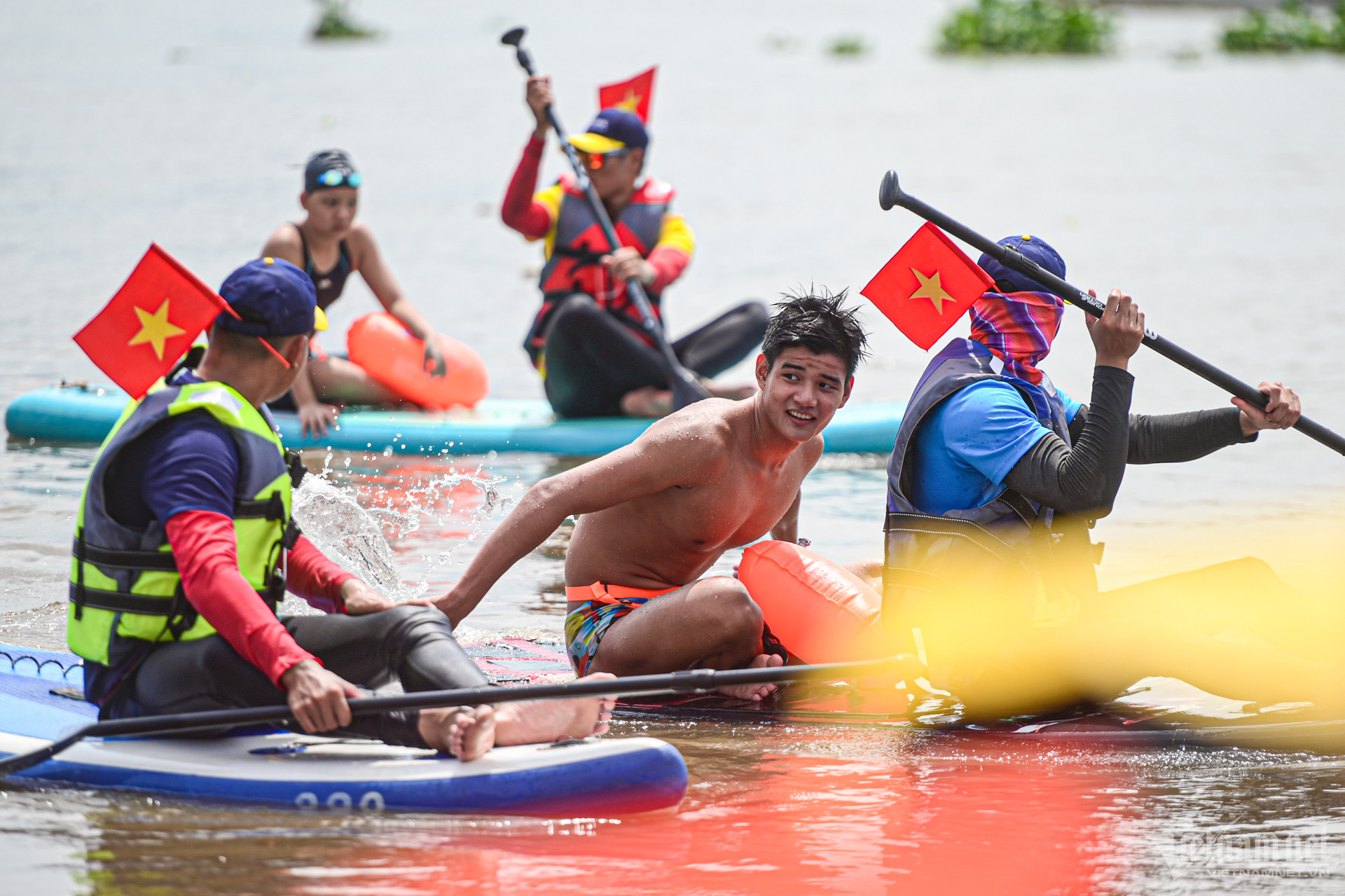 51 đội với gần 600 vận động viên đã tham gia cuộc thi bơi và chèo ván đứng vượt sông Sài Gòn, từ Cầu Ba Son đến Cầu cảng số 4, sáng 1/6, trong khuôn khổ Lễ hội sông nước TPHCM.