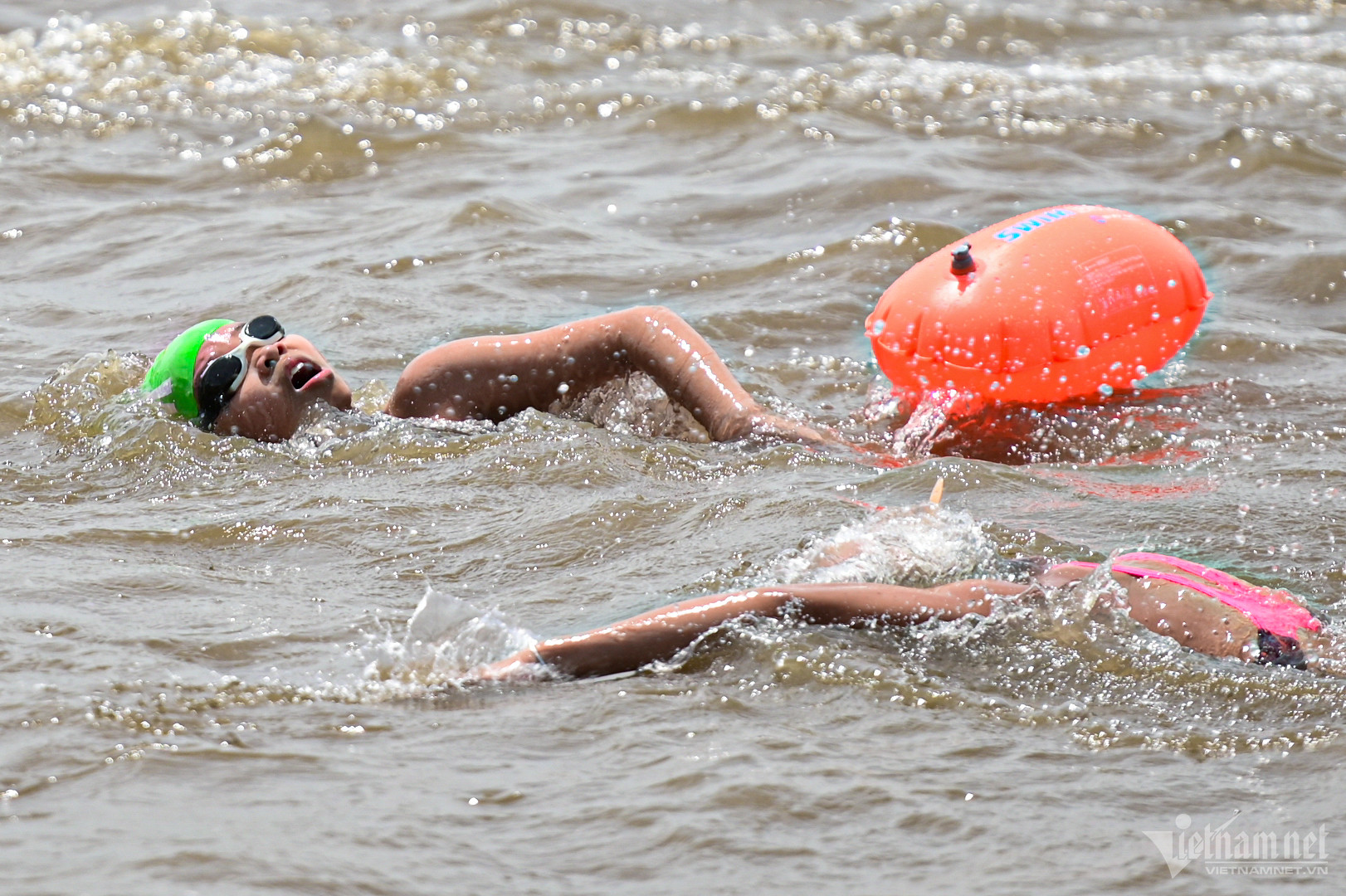 Ngay khi tiếng còi hiệu xuất phát vang lên, các vận động viên sải tay bơi chinh phục chặng bơi sông Sài Gòn. Đây là cung đường bơi được đánh giá là khó nhằn khi họ phải chịu sức cản lớn của dòng nước. Cự ly thi đấu 1.000m, 500m khu vực từ Cầu Ba Son đến Cầu cảng số 4 (Cột cờ Thủ ngữ).Hoàn thành chặng bơi 1.000m, nhiều vận động viên đuối sức được BTC dìu vào chỗ nghỉ. Ông Nguyễn Nam Nhân, Phó giám đốc Sở Văn hóa và Thể thao TPHCM, cho biết, giải đấu lần này góp phần thúc đẩy phong trào tập luyện môn bơi lội và môn ván chèo đứng (SUP), tạo điều kiện cho những người yêu thích các bộ môn này trong cả nước có cơ hội thi đấu, giao lưu, học hỏi, nâng cao trình độ, kỹ thuật chuyên môn trong tập luyện thi đấu thể thao dưới nước.Nụ cười rạng rỡ của các vận động viên khi về đích. "Tôi phải dùng 200% sức lực để chinh phục cự ly bơi khó nhằn với điều kiện thi đấu ngược dòng sông Sài Gòn này", vận động viên Lê Đỗ Gia Khang (19 tuổi) - giải Nhất cự ly bơi 1.000m chia sẻ.Anh Võ Trọng Quang chụp ảnh lưu niệm cùng con trai. "Tôi quen bơi hồ, khi được trải nghiệm chơi sông thì thấy thú vị hơn nhiều", nam vận động viên đến từ đội bơi Thủ Đức nói.Đối với nhiều vận động viên, đây là lần đầu họ được trải nghiệm bơi sông. Đây là sự kiện thể thao hướng đến cộng đồng, phục vụ nhu cầu ngày càng cao của công chúng.Nhiều hoạt động biểu diễn thể thao dưới nước đặc sắc như: trình diễn thuyền buồm sailing, trình diễn bay bằng ván phản lực nước, lướt ván, flyboard và trình diễn dù lượn… diễn ra thu hút khán giả.Màn tranh tài sôi động của các vận động viên đã tạo sức hút với đông đảo du khách, người dân bên bờ sông. "Không khí hội thi rất sôi động và hào hứng. Tôi sẽ tập bơi để năm sau có cơ hội đăng ký tham gia chương trình này", chị Nguyễn Thuý Nga (TP Thủ Đức) nói.Lễ hội sông nước TPHCM 2024 diễn ra từ ngày 31/5 - 9/6 không chỉ nhằm thúc đẩy phát triển kinh tế thành phố mà còn nhận trọng trách thổi hồn cho sông Sài Gòn, giữ gìn và quảng bá nếp sống, văn hóa, di sản quý báu của dòng sông.