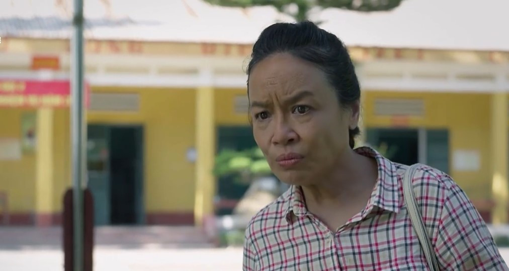 "Đồng chí Trần Đình Hiếu đẩy bạn xuống ao, gây mất đoàn kết trong đơn vị", cô ruột Hiếu (Tú Oanh) đọc to thông tin trên bảng tin tại đơn vị cháu trai.