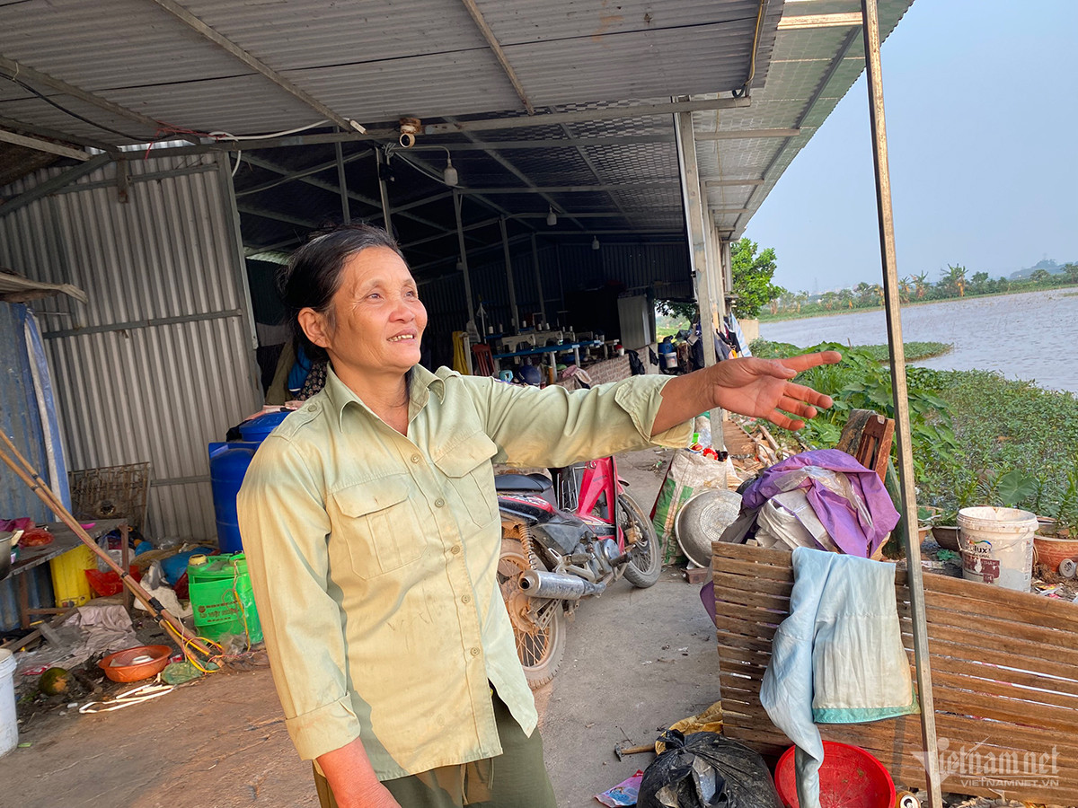 Con đường đến nơi ở hiện tại của bà Đặng Thị Hải (56 tuổi) phải đi qua nghĩa trang, xuyên qua cánh đồng mênh mông. Nơi gia đình bà coi là nhà, thực chất là một cái lán được dựng lên, ở nhờ đất dự án từ năm 2007.