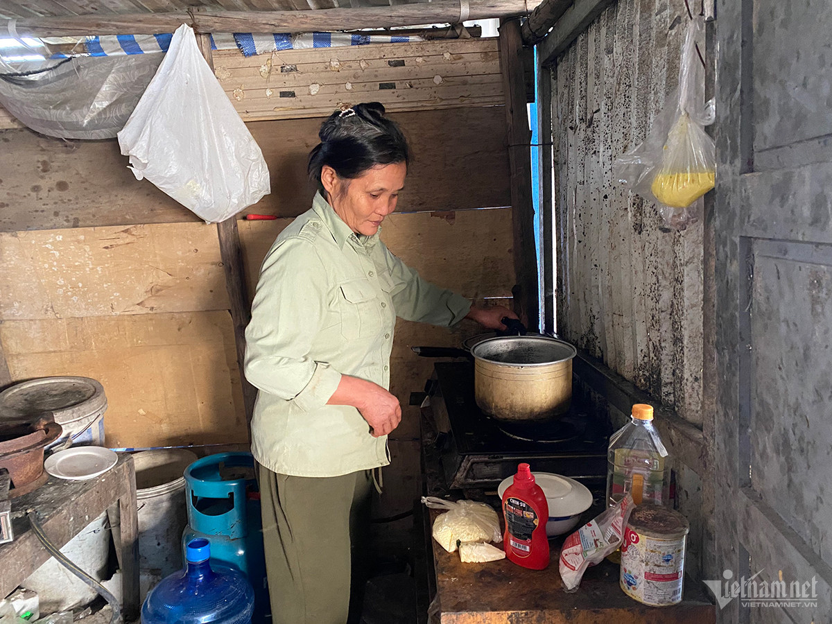 Trong nhà bà không có đồ đạc gì đáng giá. Chiếc tivi cũ, tủ lạnh cũ là được người quen cho dùng tạm. Cả khu bếp chỉ có một chiếc bếp ga và mấy cái nồi để nấu nướng. Trong nhà chỉ có duy nhất một chiếc giường cho cháu nhỏ còn lại tất cả trải chiếu, trải đệm ra sàn ngủ.