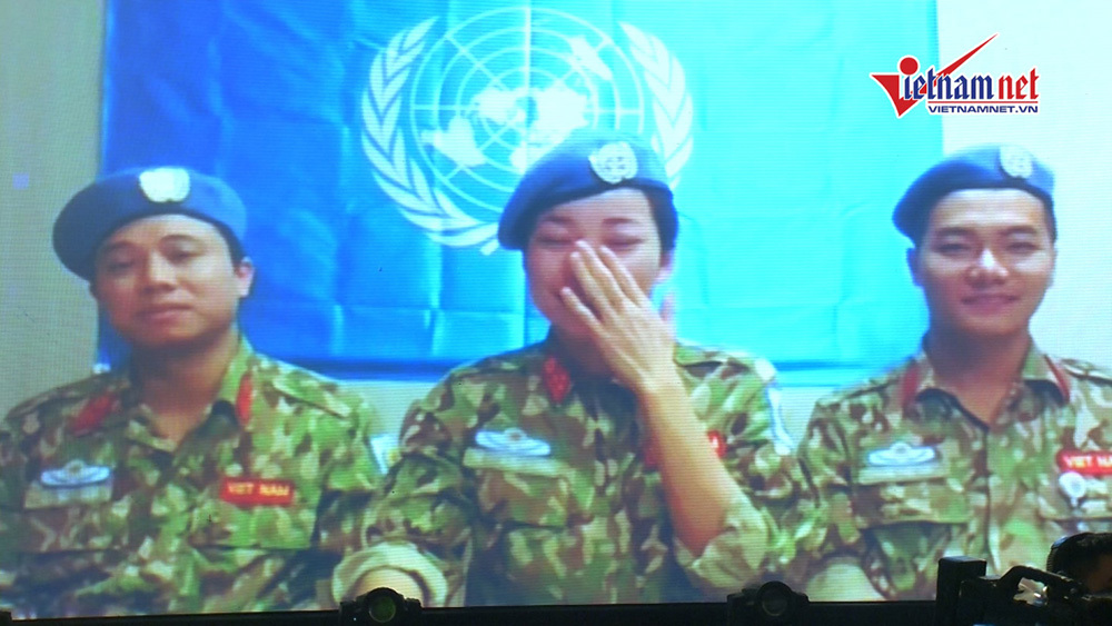 Gặp nhau qua màn hình, Thượng úy Tô Thị Kiều Chinh (từ Bentiu, Nam Sudan) và người cha (Hà Nội) đều rơi nước mắt, người chứng kiến cũng rưng rưng…
