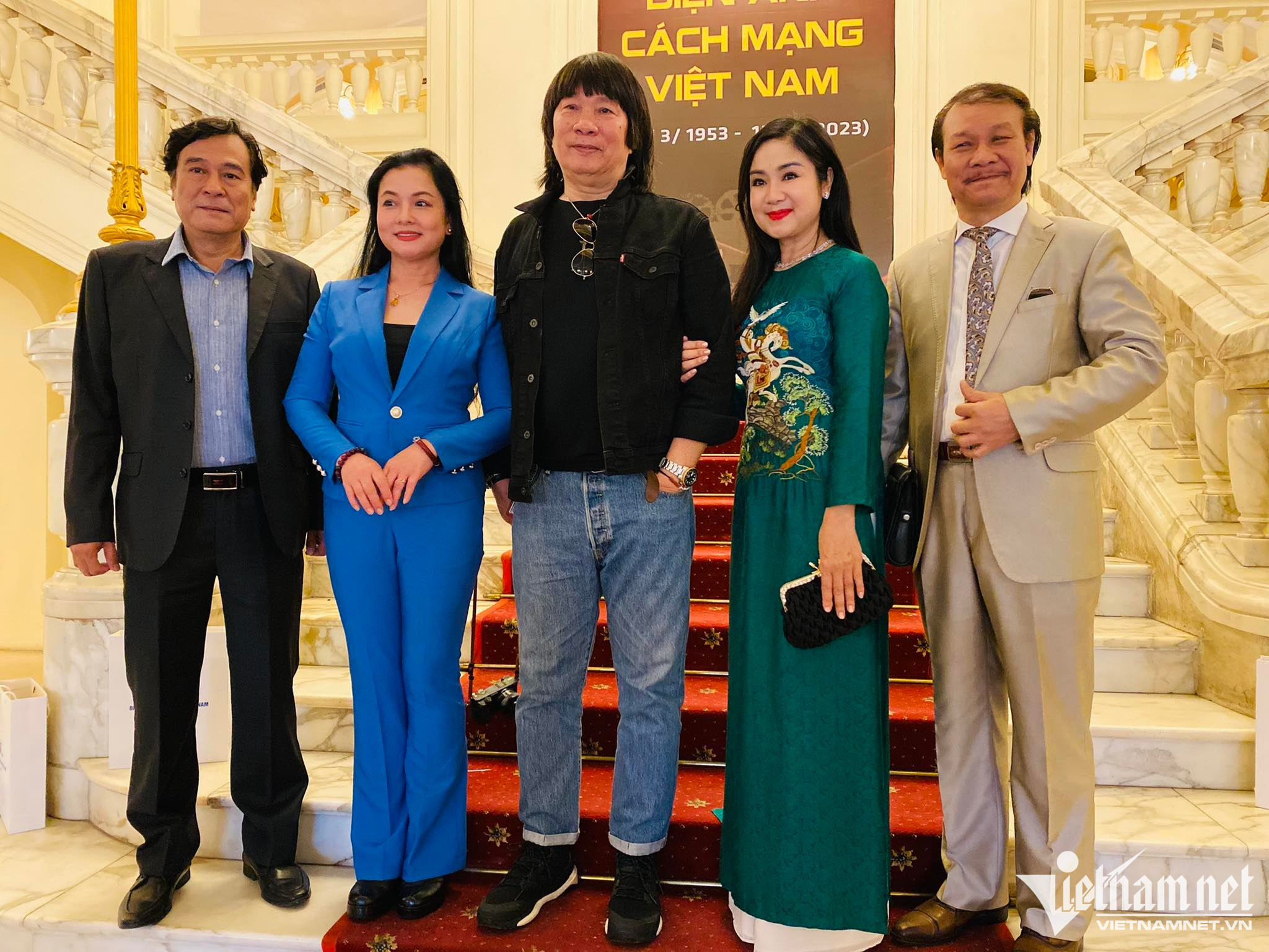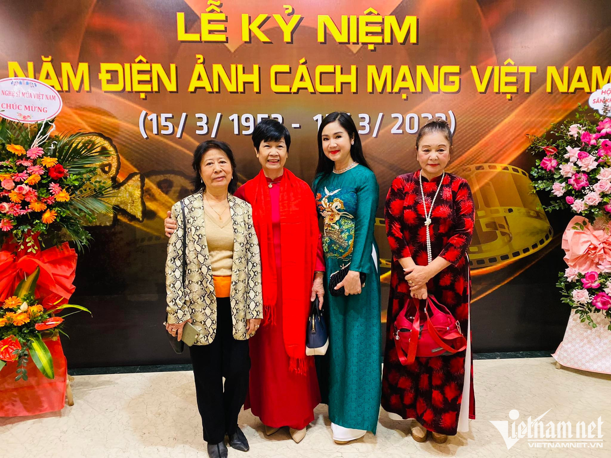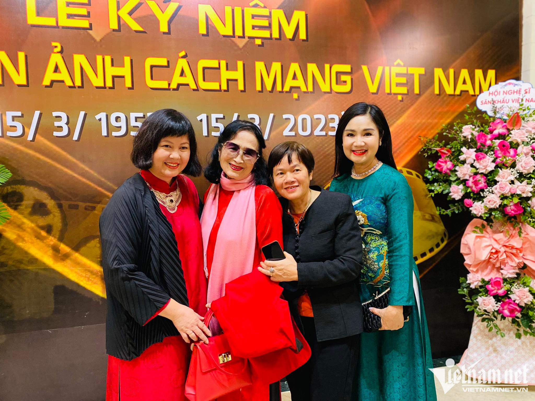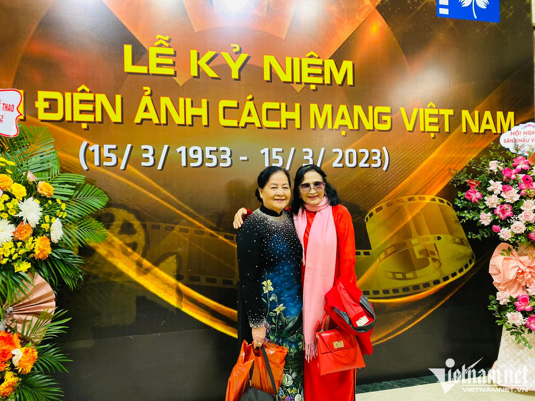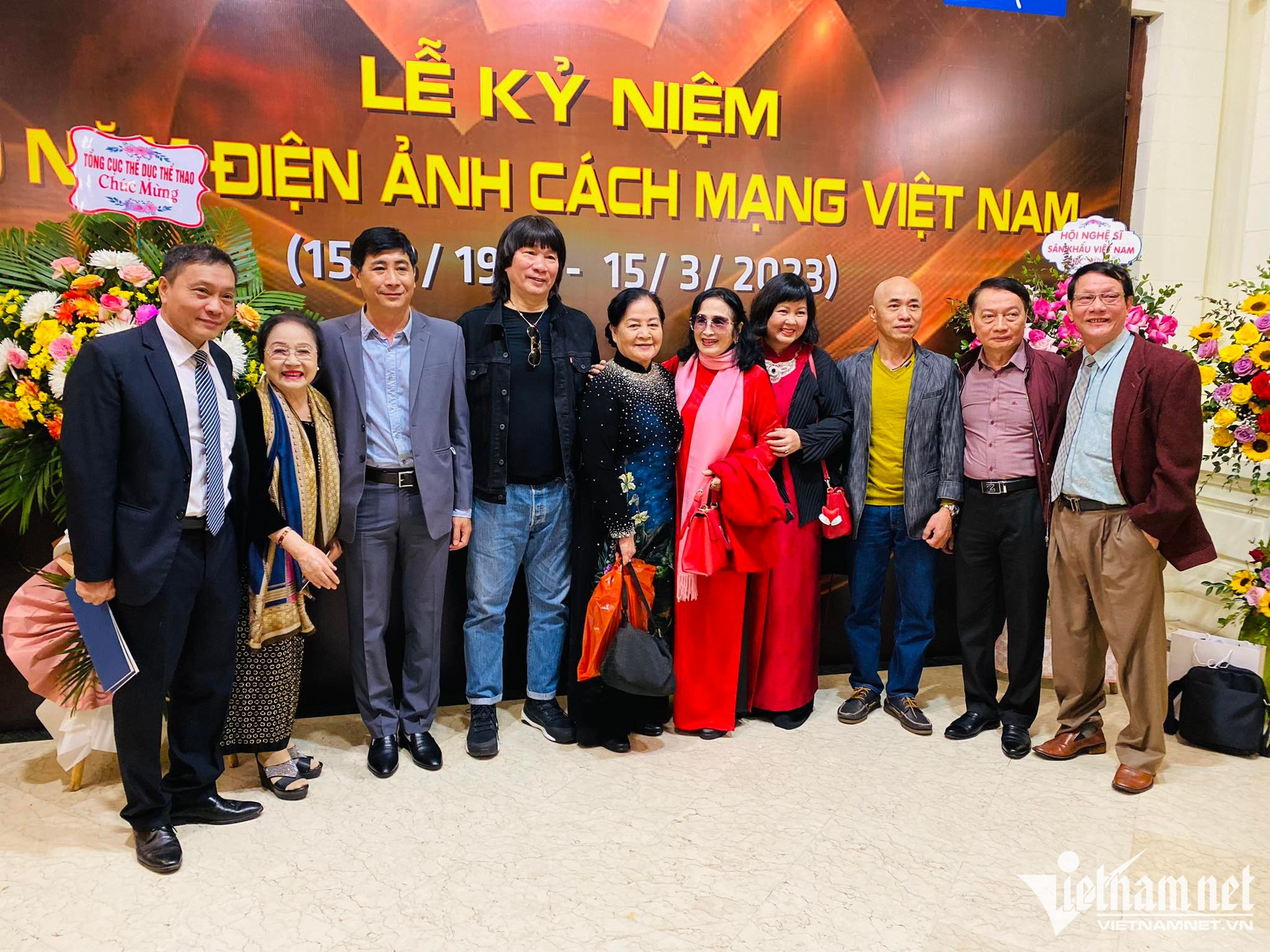Từ phía Nam ra, NSND Trà Giang luôn được các nghệ sĩ xin chụp hình. Điện ảnh Việt Nam có 70 năm hình thành thì bà đã có 60 năm gắn bó với phim ảnh. Nữ nghệ sĩ chụp cùng NSND Thu Hà, đạo diễn Nhuệ Giang và bà Thu Hà - Cục phó Cục Điện ảnh - con gái và con dâu của NSND Hải Ninh. Ông là đạo diễn phim 'Đêm hội Long Trì' mà NSND Thu Hà đóng chính.NSND Trà Giang hội ngộ NSND Ngọc Lan. Cả hai nghệ sĩ đều sinh năm 1942, từng tham gia nhiều bộ phim điện ảnh cách mạng và rất minh mẫn ở tuổi ngoài 80. Các NSND Mạnh Cường, Thu Quế, Thu Hà, Nguyễn Hải và họa sĩ Vũ Huy. NSND Hà Bắc, NSƯT Trần Lực, họa sĩ Vũ Huy và NSƯT Võ Hoài Nam chụp hình kỷ niệm bên lề. Diễn viên Võ Hoài Nam gần đây quen thuộc với khán giả qua phim truyền hình ''Hương vị tình thân''. Anh xuất thân từ Hãng phim truyện Việt Nam, từng đóng chính phim ''Vua bãi rác'' từng được Việt Nam gửi đi Oscar. Nam nghệ sĩ đến sự kiện trong trang phục jeans bụi phủi. Võ Hoài Nam không quên chụp hình chung với NSND Trà Giang. Từ phải sang: NSƯT Thanh Loan (vai ni cô Huyền Trang trong phim Biệt động Sài Gòn) cùng NSND Thu Hà, NBK Nguyễn Thị Hồng Ngát - nguyên Giám đốc Hãng phim truyện Việt Nam. NSND Thu Hà và nhà biên kịch Nguyễn Thị Hồng Ngát. MC Quyền Linh từ TP.HCM bay ra vài ngày qua để tham gia các hoạt động về nguồn. Anh là thành viên BTC sự kiện kỷ niệm 70 năm thành lập Điện ảnh cách mạng Việt Nam.
