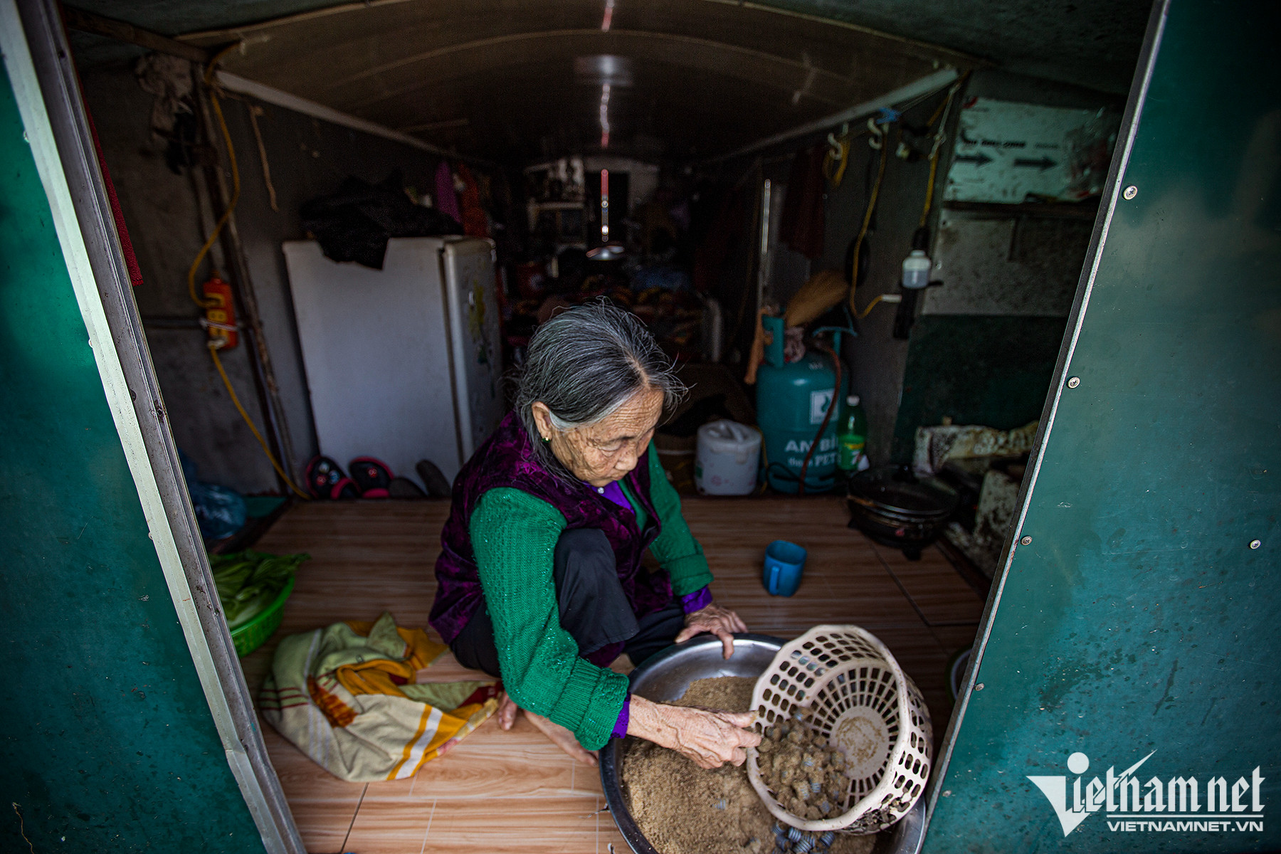 Đáng chú ý tại đây là gia đình ông Tuất, bà Thú, là hộ gia đình có thời gian “định cư” lâu nhất làng. Hai ông bà đã lên và neo đậu lại giữa lòng thành phố Hòa Bình từ những năm 1980. Ông Tuất không may bị chột một mắt ngay từ khi lọt lòng mẹ. May mắn sau này dù khiếm khuyết trên cơ thể và có cuộc sống thiếu thốn, "già làng vạn chài" vẫn xây dựng được một gia đình êm ấm.