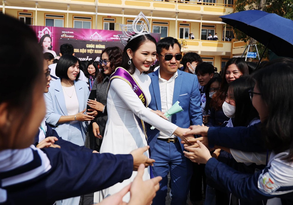 Trở về trường xưa với vương miện trên đầu, Mai Anh cho biết cô thấy xúc động, tự hào. Tân hoa hậu được các em học sinh vây kín, xin chữ ký, chụp ảnh kỷ niệm. Cô cũng bắt tay, giao lưu, trò chuyện cùng đàn em. Theo các thầy cô, khi còn học cấp 3, Mai Anh đã được nhiều bạn học và các em lớp dưới ngưỡng mộ bởi cô luôn đạt thành tích học tập ấn tượng.
