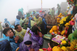 Sáng 8/2, hàng trăm du khách xếp hàng vào rút quẻ xem số mệnh nhân dịp năm mới tại lễ hội đền Sái, làng Thụy Lôi, xã Thụy Lâm, huyện Đông Anh (Hà Nội).