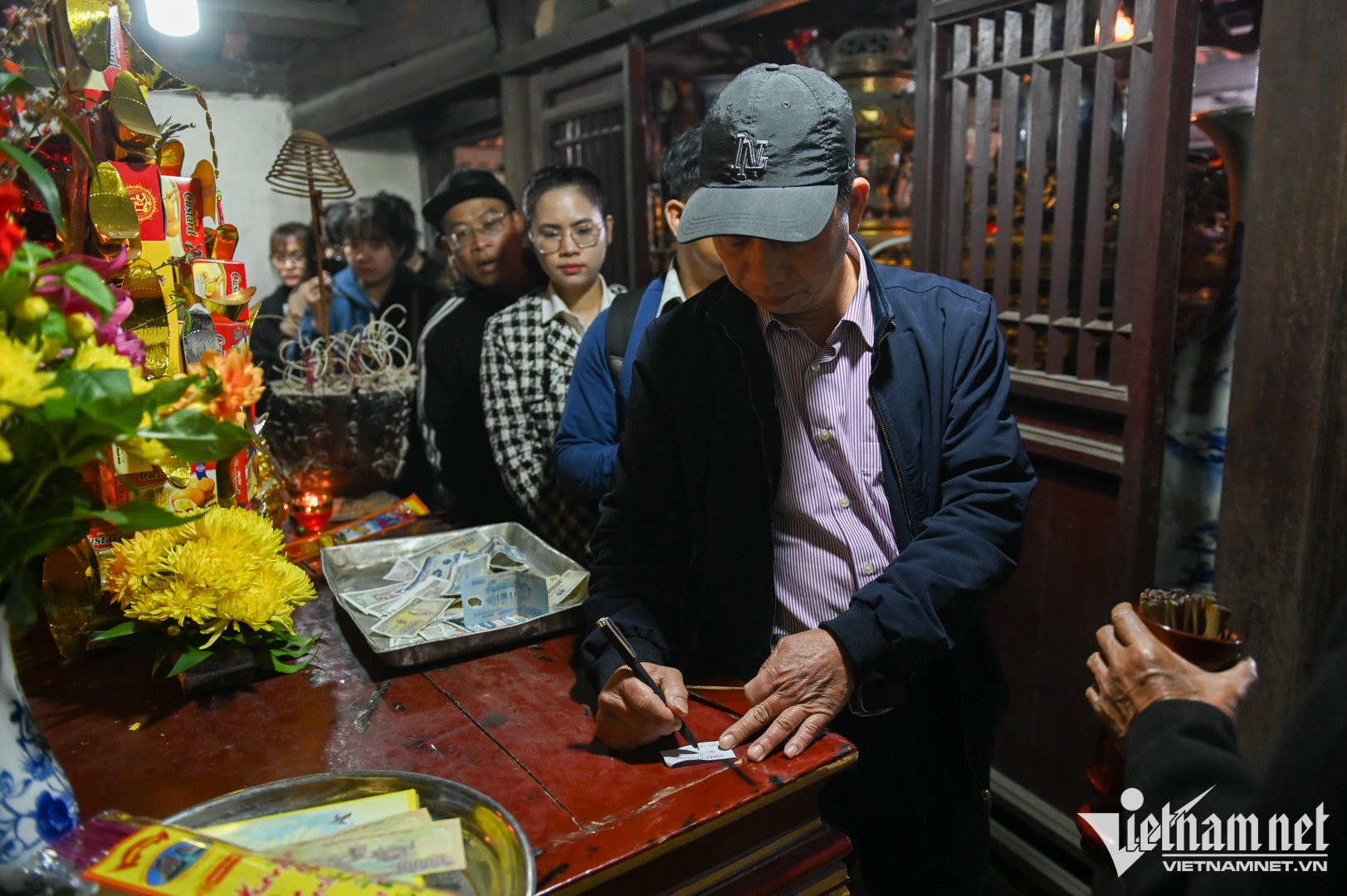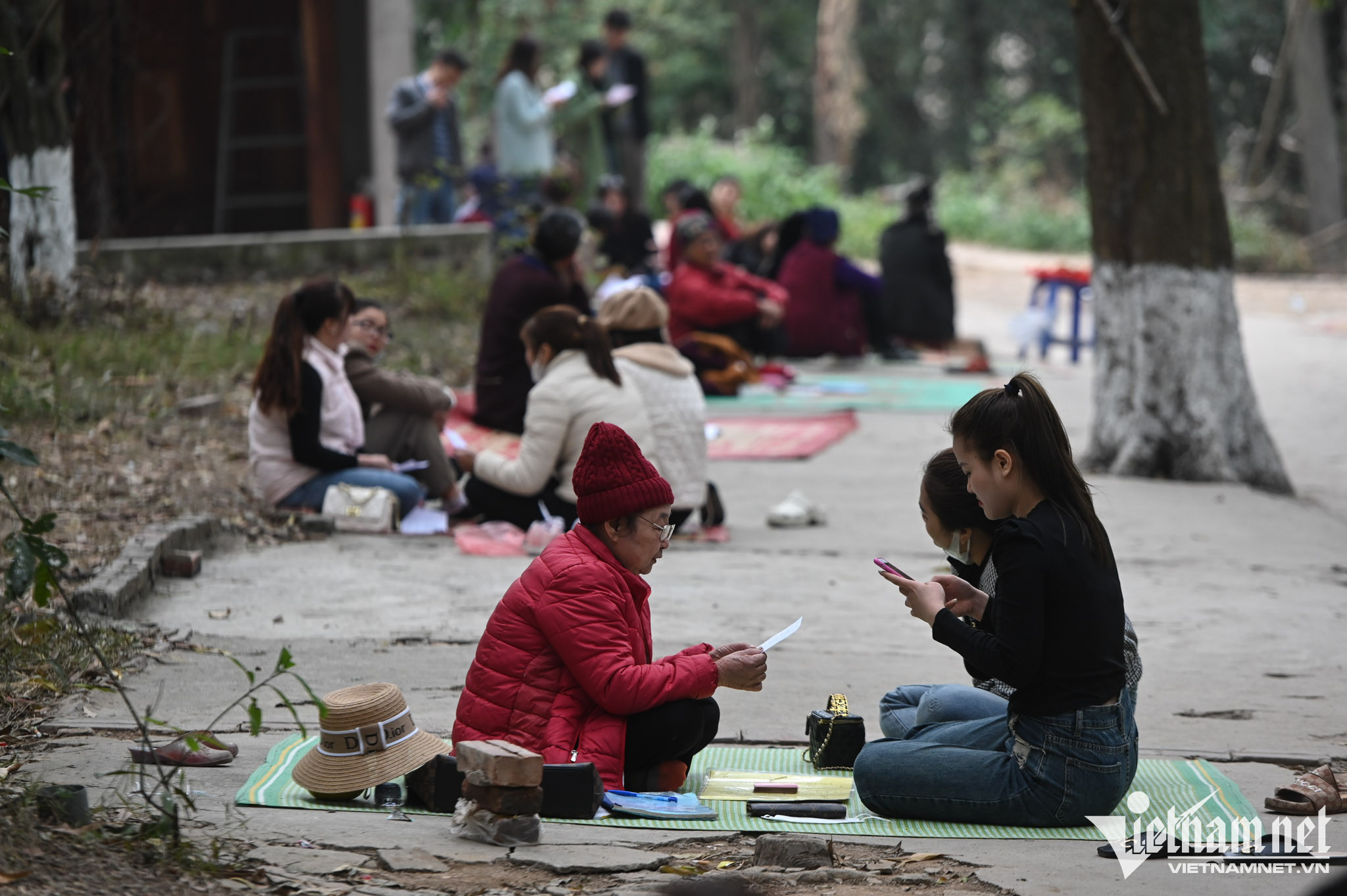 Ngay gần đó, dịch vụ cho chữ cũng hút khách. Hai phụ nữ đến từ Sóc Sơn cho biết, chỉ xin chữ "bình an" cho gia đình chứ không xin quẻ hay bói toán đầu năm. Họ chia sẻ: "Đầu năm tôi đi nhiều đền, chùa, hầu hết là cầu sức khỏe, bình an chứ không ham mê bói toán. Tôi không muốn những điều đó làm phân tâm bản thân".