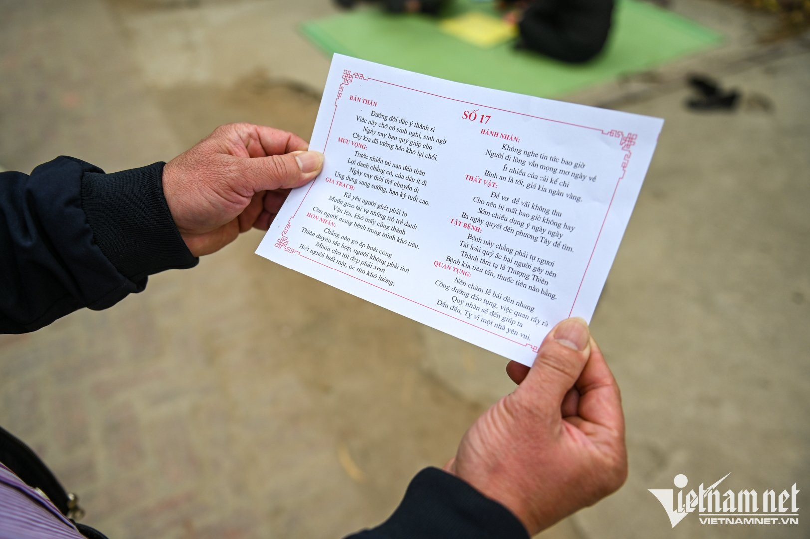Ông Nguyễn Quang Nghĩa (người huyện Đông Anh) rút được quẻ số 17, chia sẻ: "Quẻ này cho rằng, năm nay tôi có tiến triển về làm ăn, tuy nhiên cần để ý về sức khỏe. Trong quẻ có nói về việc thành tâm tạ lễ sẽ khiến bệnh tiêu tan, khiến tôi nửa tin nửa ngờ".