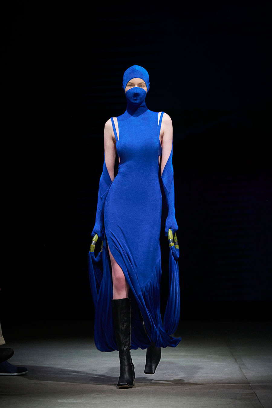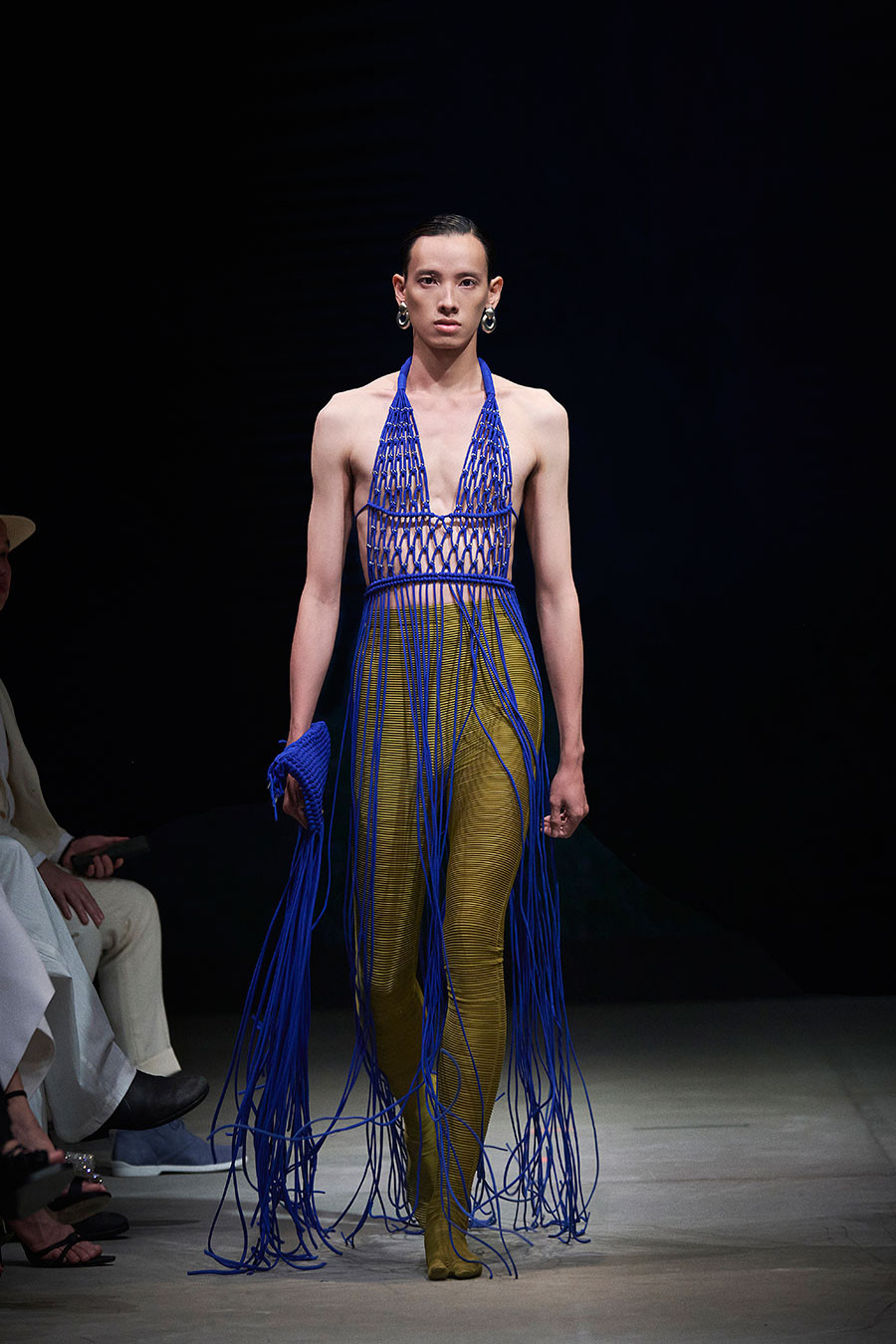 Đầm xẻ vai táo bạo dài tới cánh tay, độc đáo với khuyên tròn kết thúc ở gấu váy. Váy lụa xẻ lườn hai bên hông, kết hợp quần dài quá khổ, đầm xếp ly bất đối xứng đi cùng áo crop top hở lưng, hay đầm lưới tết thủ công từ lụa mỏng.