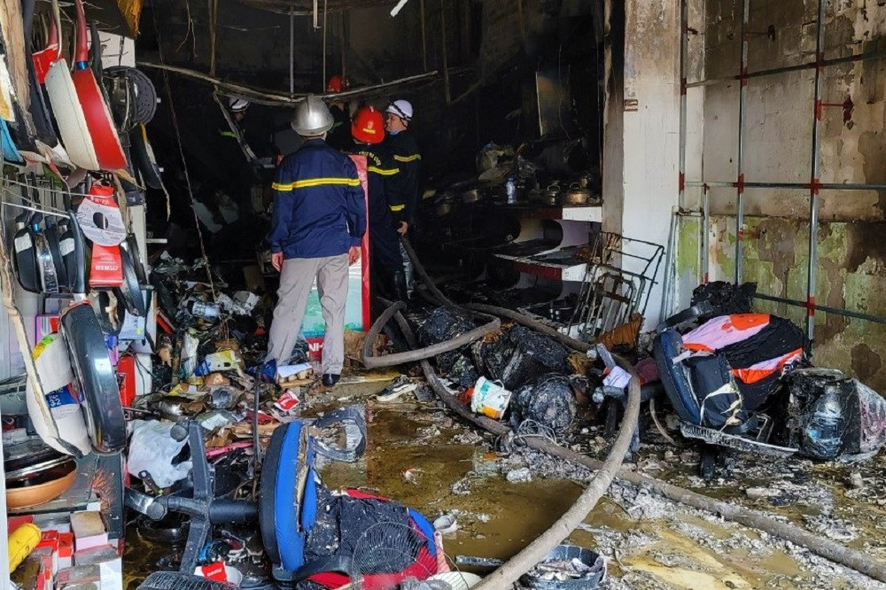Nơi xảy ra cháy là cửa hàng bán đồ điện gia dụng, bên trong có nhiều đồ điện dễ bắt lửa. Lúc này, có 4 người mắc kẹt tại tầng 3.