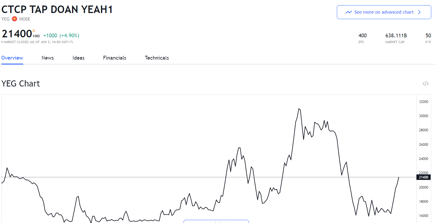 Ngày sau đó, cổ phiếu của YEG ghi nhận nhiều chuỗi phiên giảm sàn, đặc biệt chuỗi 11 phiên từ 5-18/3/2019, cổ phiếu YEG rơi một mạch từ 245.000 đồng/cp xuống còn 110.500 đồng/cp, giảm 55% giá trị, tương ứng với 4.200 tỷ đồng vốn hóa đã bốc hơi. Nếu tính từ đầu năm 2019 đến cuối tháng 8/2019 YEG mất hơn 3/4 giá trị, từ vùng giá 235.000 đồng/cp xuống 50.700 đồng/cp. Hiện, trên thị trường, cổ phiếu YEG rơi về vùng đáy khi chốt phiên ngày 6/6 ở mức 22.850 đồng/cp.