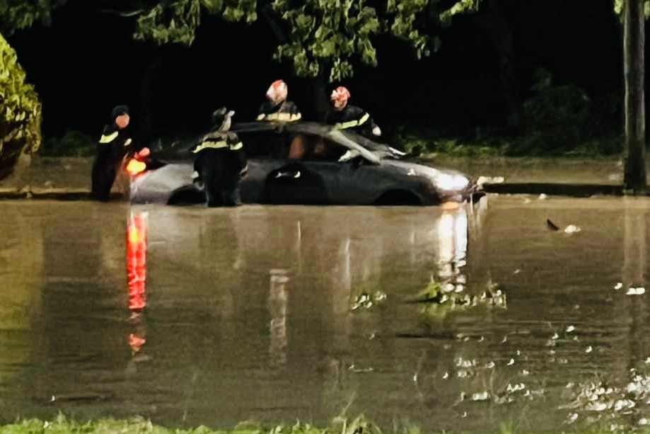Tại tuyến đường 25C (KCN Nhơn Trạch), nước ngập sâu khiến 2 ô tô chết máy, phải nhờ lực lượng cảnh sát PCCC và CNCH phối hợp với CSGT hỗ trợ di dời đến nơi an toàn.