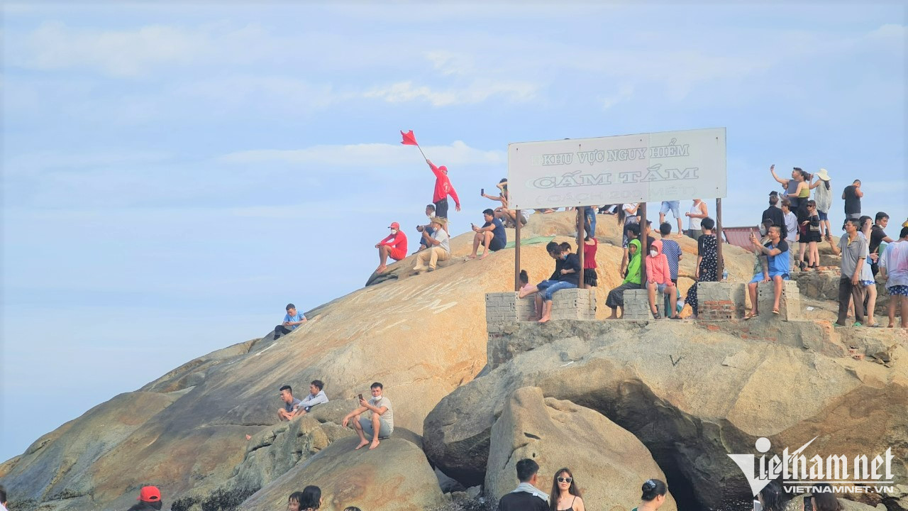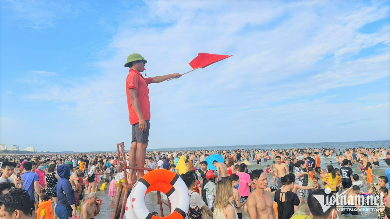 Một số hình ảnh lực lượng cứu hộ ở Sầm Sơn căng mình theo dõi giữa “biển người”.
