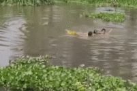 Thấy một phụ nữ chới với giữa dòng nước, hai người đàn ông đang đi đường lập tức lao xuống sông cứu.