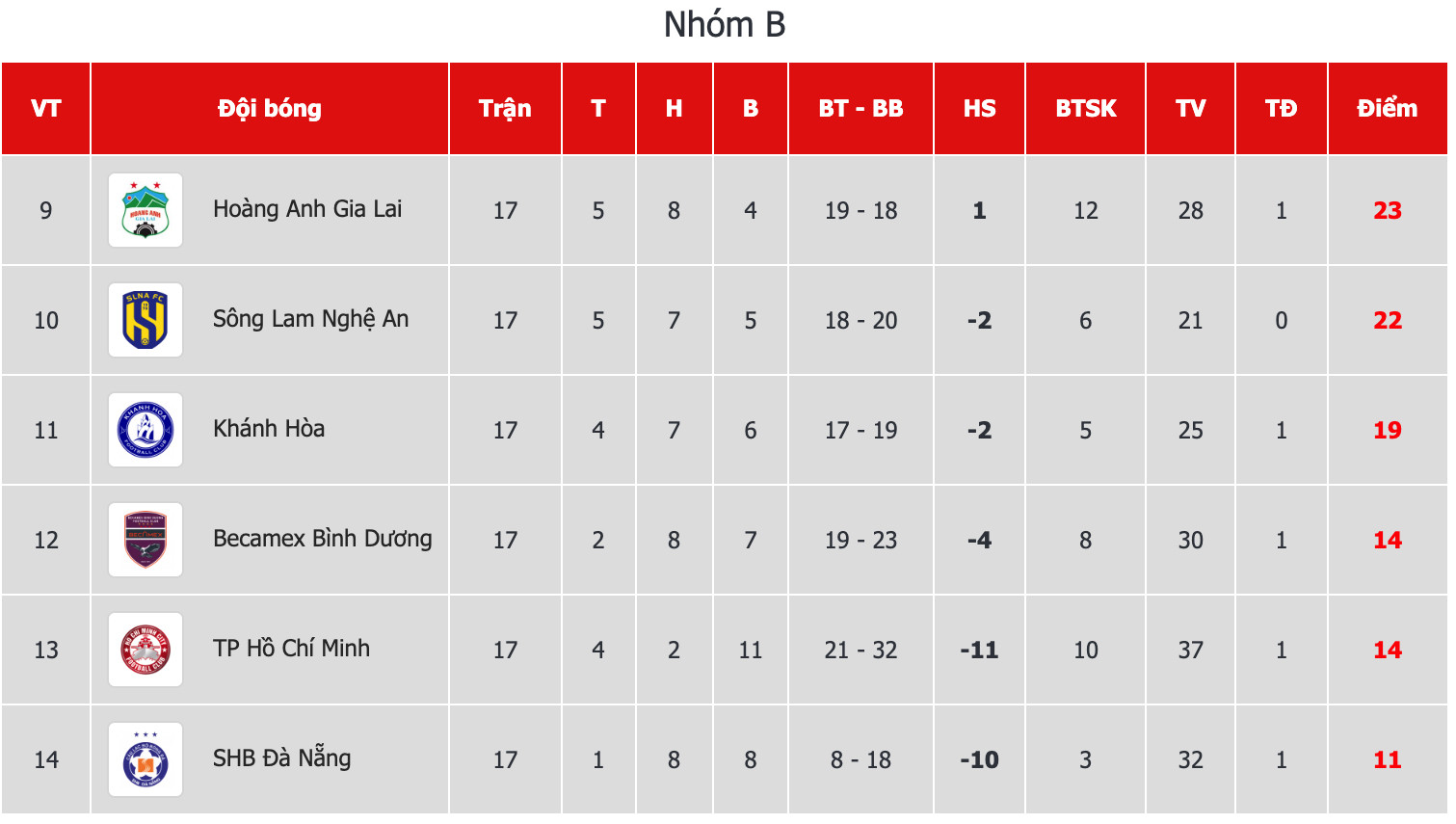 Khi đó, SHB Đà Nẵng sẽ bằng điểm với TPHCM nhưng hơn hiệu số bàn thắng-bại (hiện tại -10 so với -11). Theo điều lệ giải V-League 2023, các đội bóng có điểm số bằng nhau sẽ xếp hạng dựa trên các tiêu chí ưu tiên lần lượt như sau: hiệu số bàn thắng - bại của cả mùa, tổng số bàn thắng của cả mùa, điểm fair-play (thẻ vàng, thẻ đỏ).