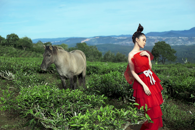 Á hậu Lý Kim Thảo vừa thực hiện bộ ảnh thời trang trong tiết trời giá lạnh của Đà Lạt, cô và ekip phải thức dậy từ 2h sáng để di chuyển và makeup.