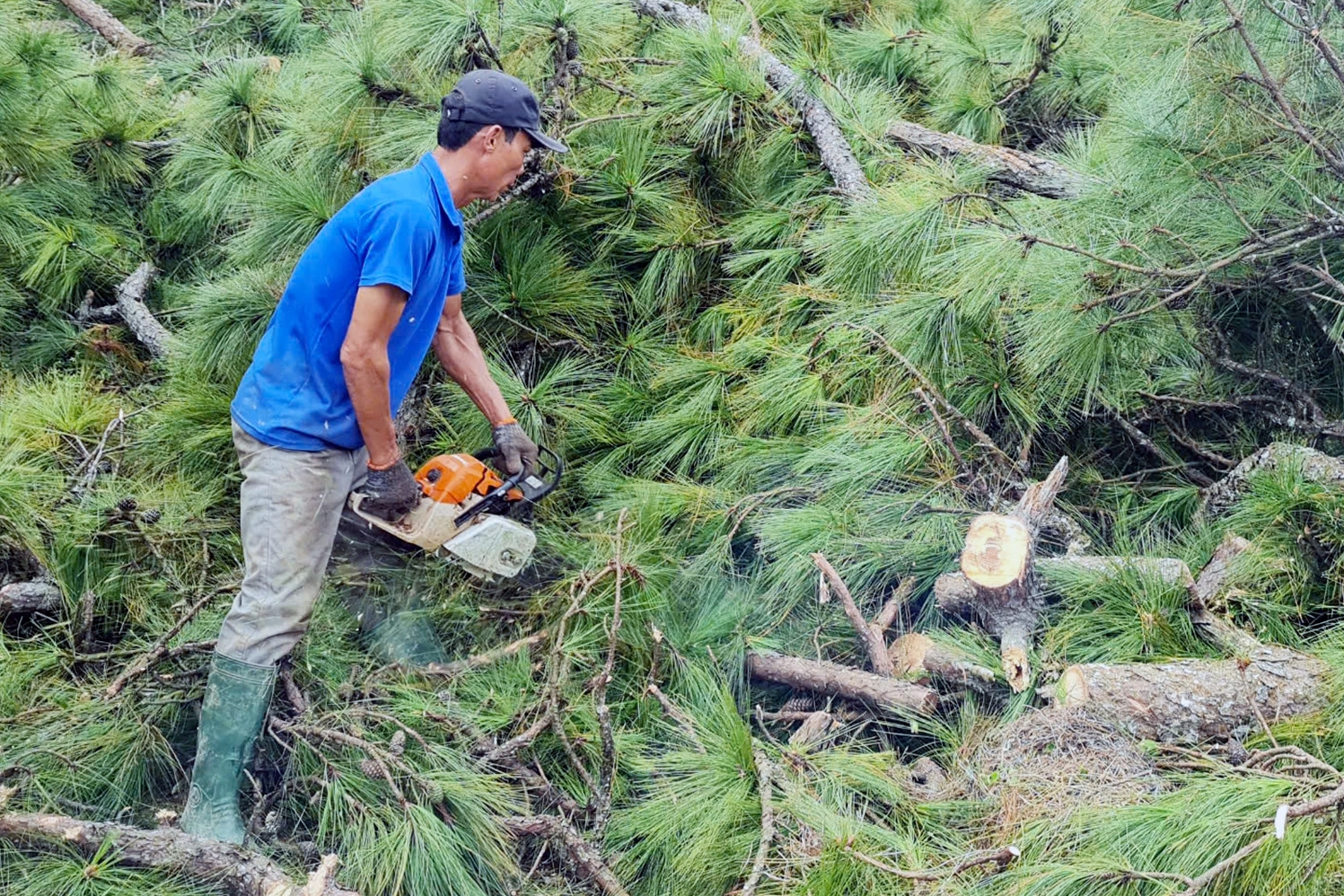 Hàng chục cây thông cổ thụ bị đốn hạ để mở rộng đường ở Đà Lạt