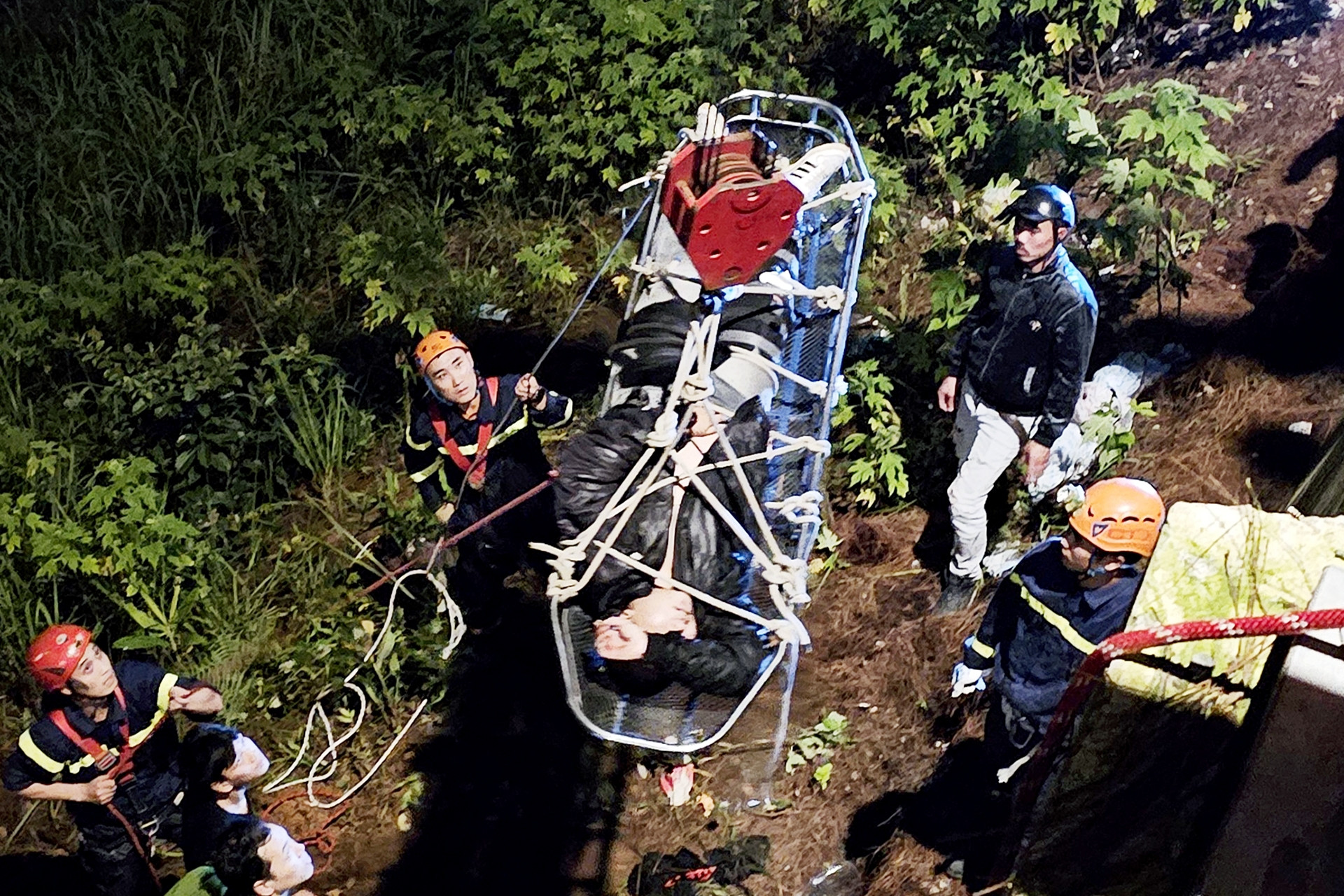 Chạy xe máy trên đèo Prenn ở TP Đà Lạt, thanh niên 24 tuổi tông vào hộ lan bê tông rồi rơi xuống đèo, được lực lượng chức năng giải cứu, đưa tới bệnh viện.