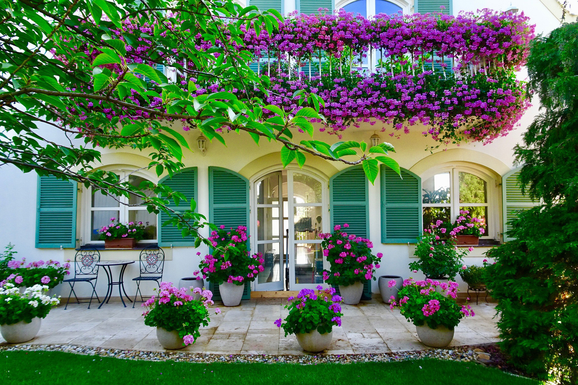 Để ban công và vườn nhà có hoa nở từ mùa xuân tới cuối thu, chị thường cố gắng trồng nhiều loại hoa và cây. Vườn của chị đẹp nhất vào thời điểm từ cuối xuân đến hết mùa hè. Hoa phong lữ thảo nở rực rỡ trên ban công nhà chị là loài hoa một vụ, nở liên tục từ mùa xuân cho tới khi tuyết rơi thì hoa tàn.