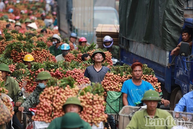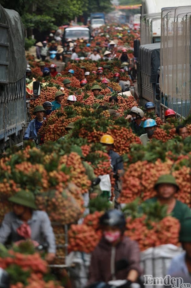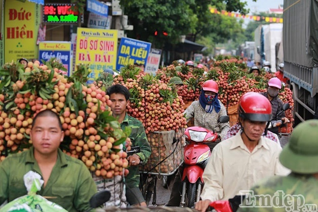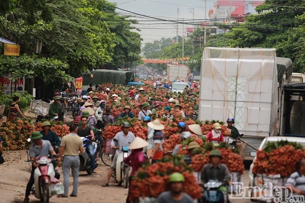 Những ngày giữa tháng 6, quốc lộ 31 - trục đường chính chạy vào "vựa" vải thiều lớn nhất cả nước thuộc địa bàn xã Phượng Sơn (Lục Ngạn, Bắc Giang) luôn tấp nập cảnh mua, bán. Từ khi bắt đầu vào vụ thu hoạch vải cách đây khoảng 1 tuần, các tuyến đường luôn xảy ra cảnh ùn tắc do phương tiện từ khắp các tỉnh thành trên cả nước đổ về đây mua vải thiều. Vào giờ cao điểm, xe máy, ô tô xếp hàng dài và di chuyển khá khó khăn. Dự kiến, năm nay, sản lượng vải thiều Bắc Giang có thể đạt được khoảng 130.000 tấn.