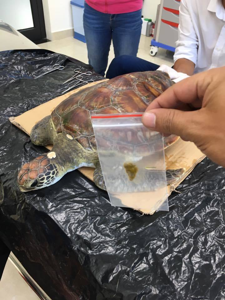 Sau gần 2 tiếng hiện ca nội soi, được chia làm 3 lần để không làm rùa mất sức; nhiều dị vật đã được các bác sĩ lấy ra thành công, như lưới, plastic và những miếng xốp..