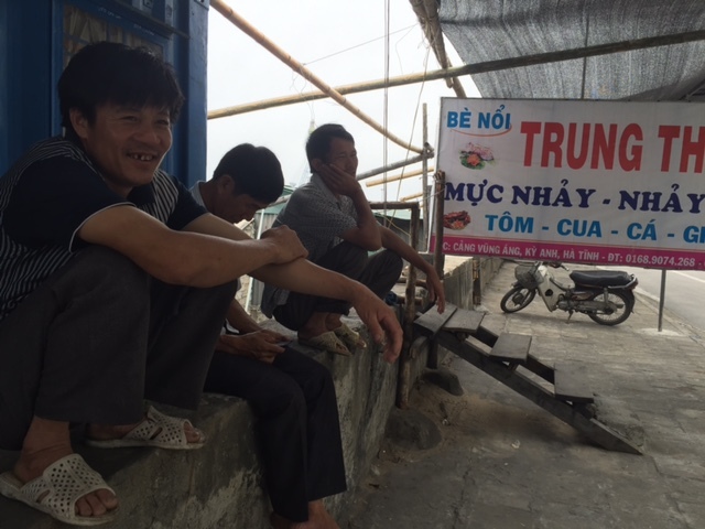 Mặc dù đã vào giờ trưa nhưng gần 20 nhà hàng bè nổi kinh doanh mực nhảy (mực đang còn sống), cá đặc sản tại cảng Vũng Áng vắng tanh không một người khách. Ngoài cửa vào, bên cạnh các biển hiệu quảng cáo, chủ nhà hàng không còn buồn mời gọi khách. Ngồi ủ rũ. Họ biết có mời nhiệt tình khách cũng không vào.