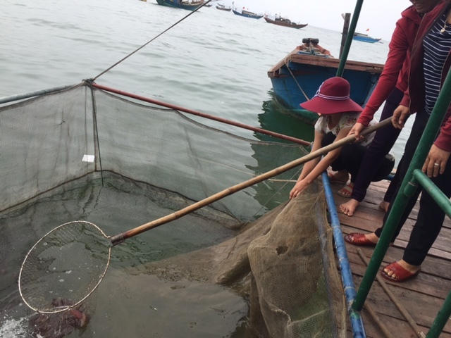 Chủ bè nổi Hậu Thìn, một địa điểm kinh doanh “có thương hiệu” ở đây cũng chung tình cảnh. Hai tuần nay không bán được cá, mực, ngư dân đi biển câu mực nhảy cũng không thèm ra biển, vì hàng ứ đọng rất nhiều.