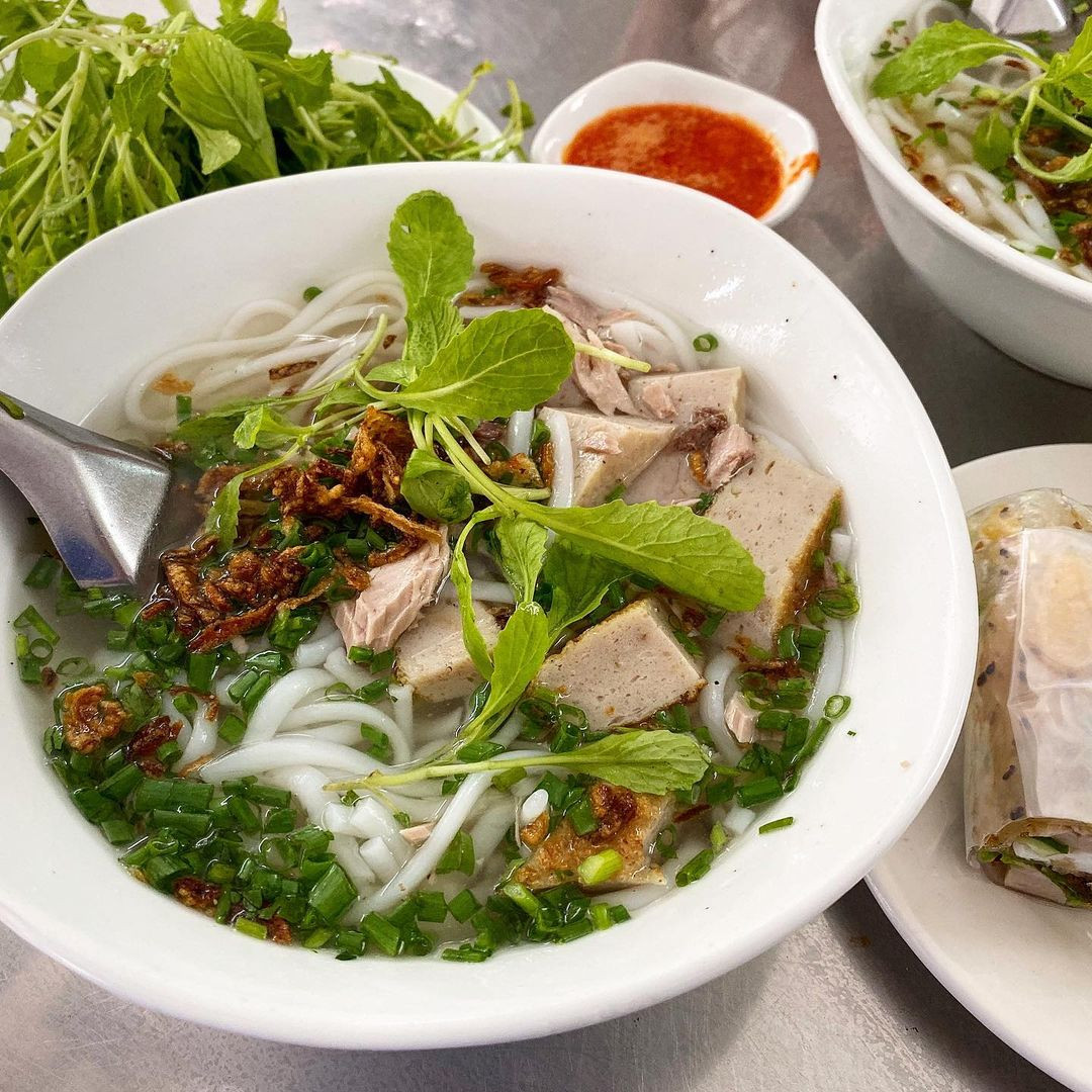 Một tô đầy đủ sẽ gồm sợi bánh, chả cá, cá dầm, ngò thơm, hành lá và phía trên rắc thêm chút tiêu đen. Khi đưa vào miệng, bánh canh mềm, mịn, dẻo, nước dùng ngọt thanh, chả cá thơm thơm hòa quyện.